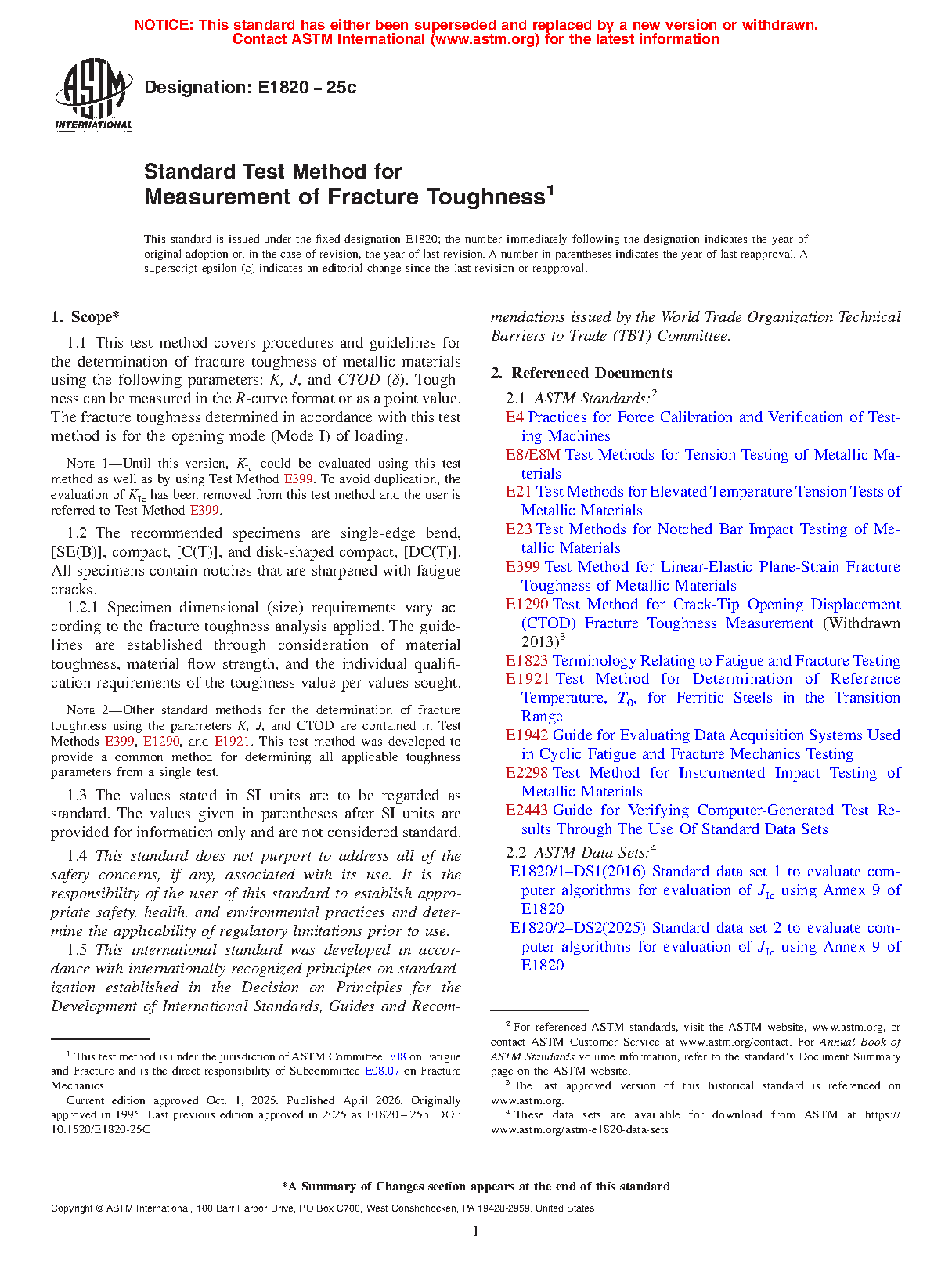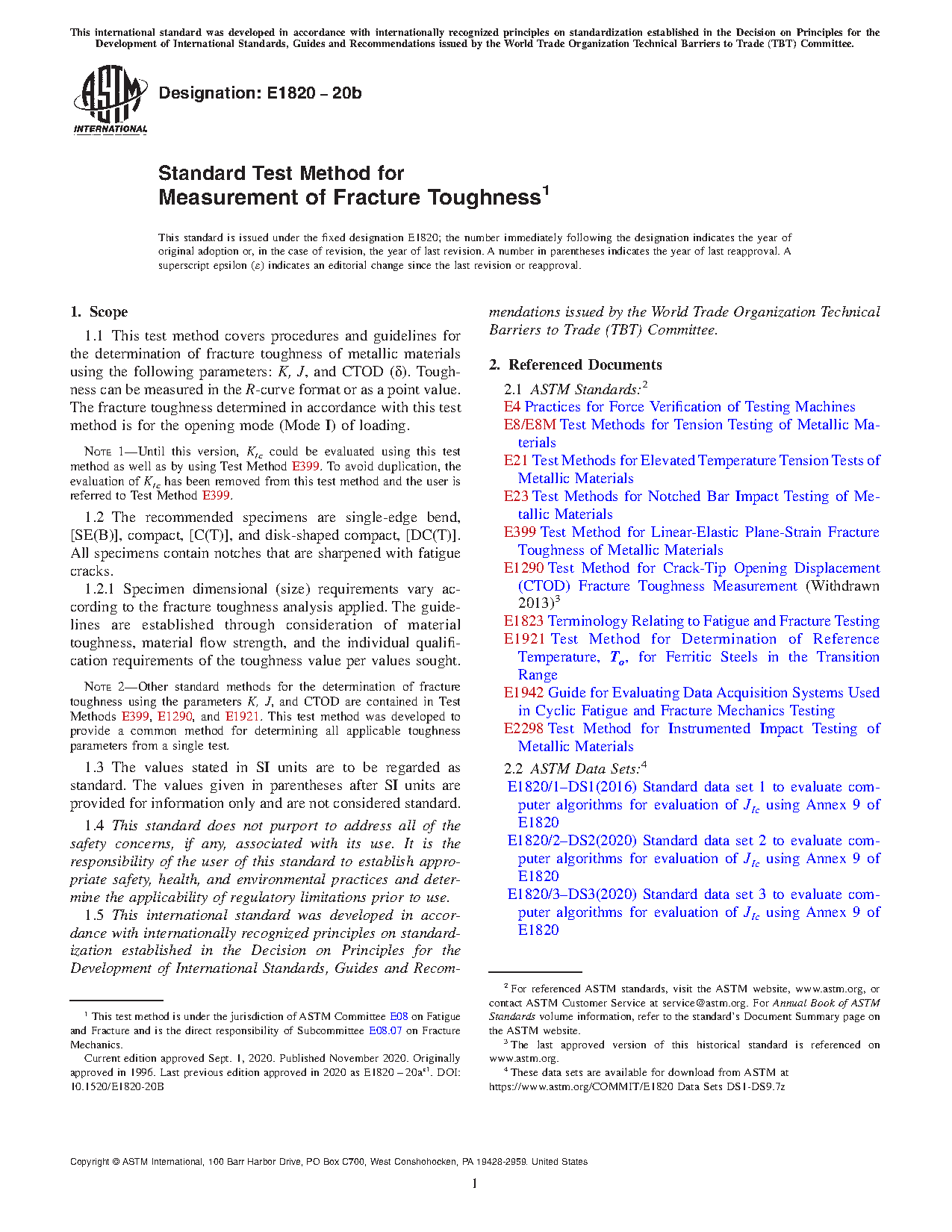 Note 1: Until this version, KIc could be evaluated using this test method as well as by using Test Method E399. To avoid duplication, the evaluation of KIc has been removed from this test method and the user is referred to Test Method E399.