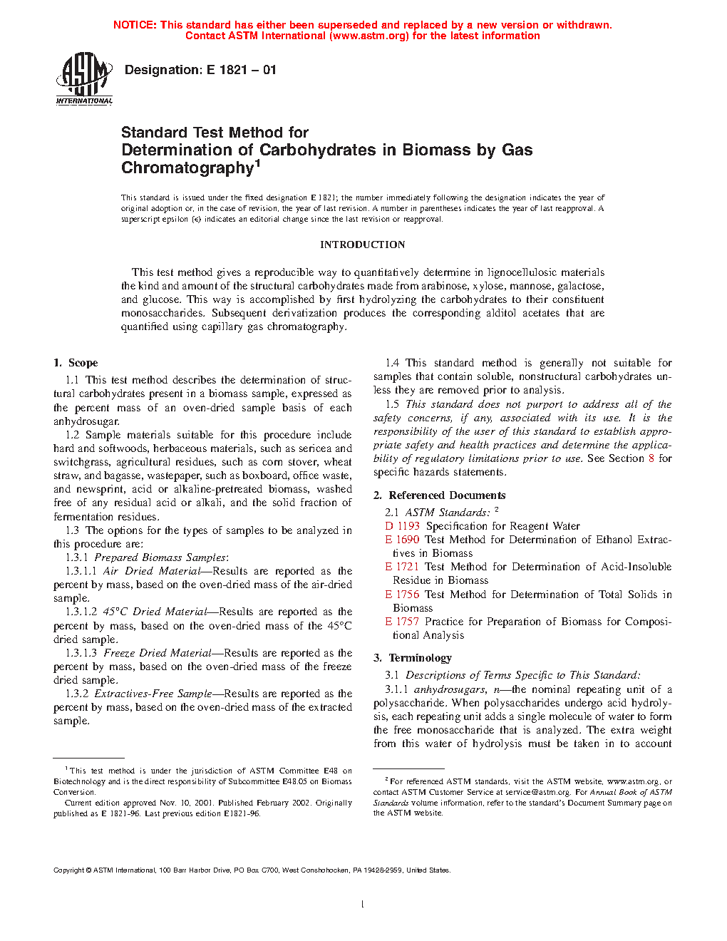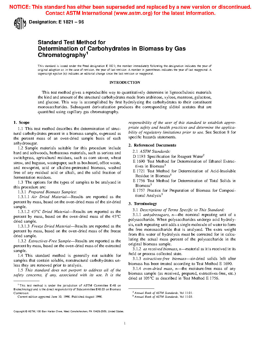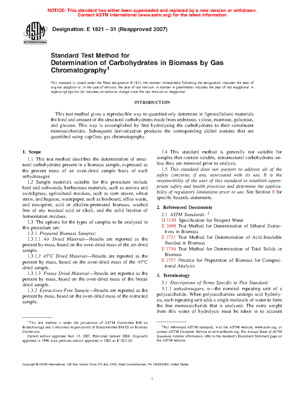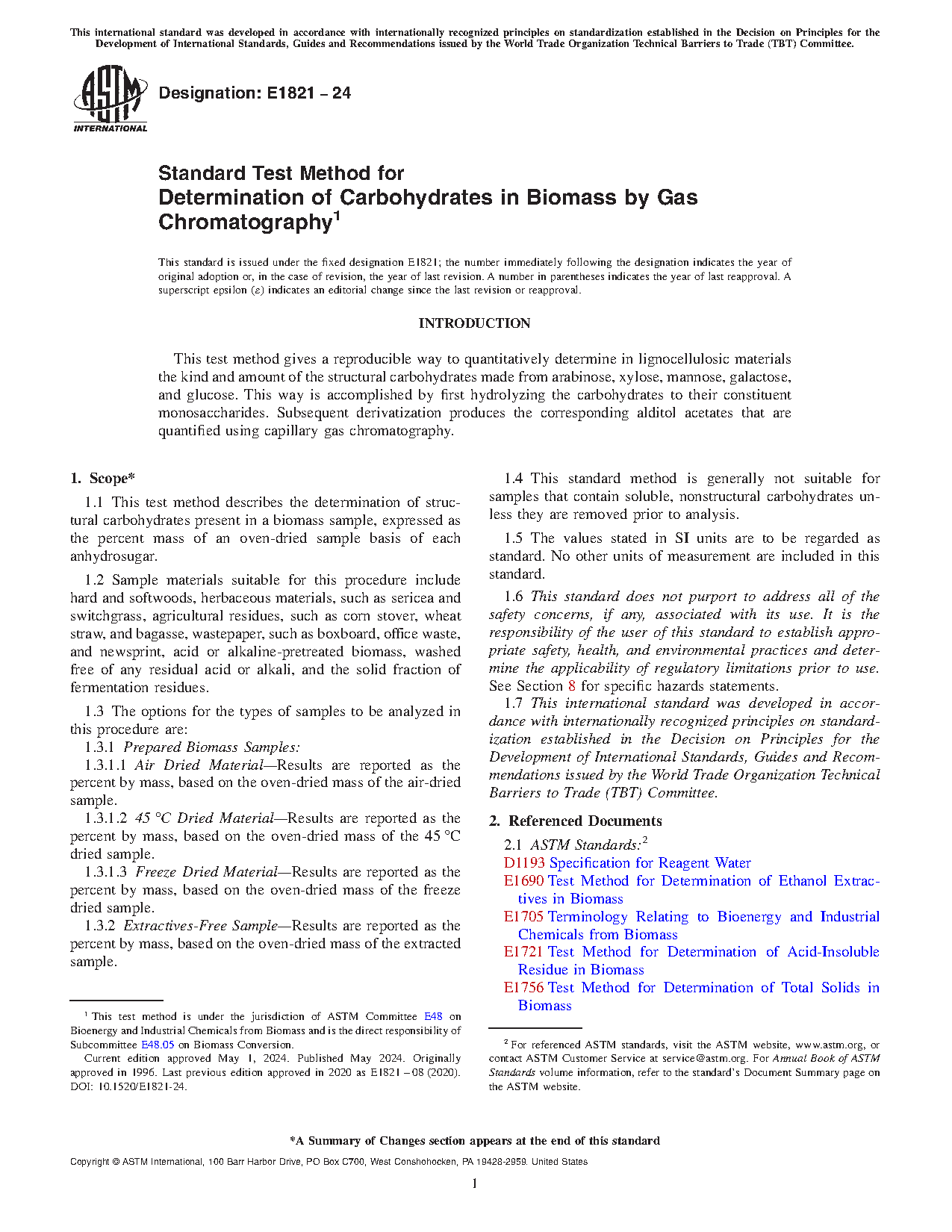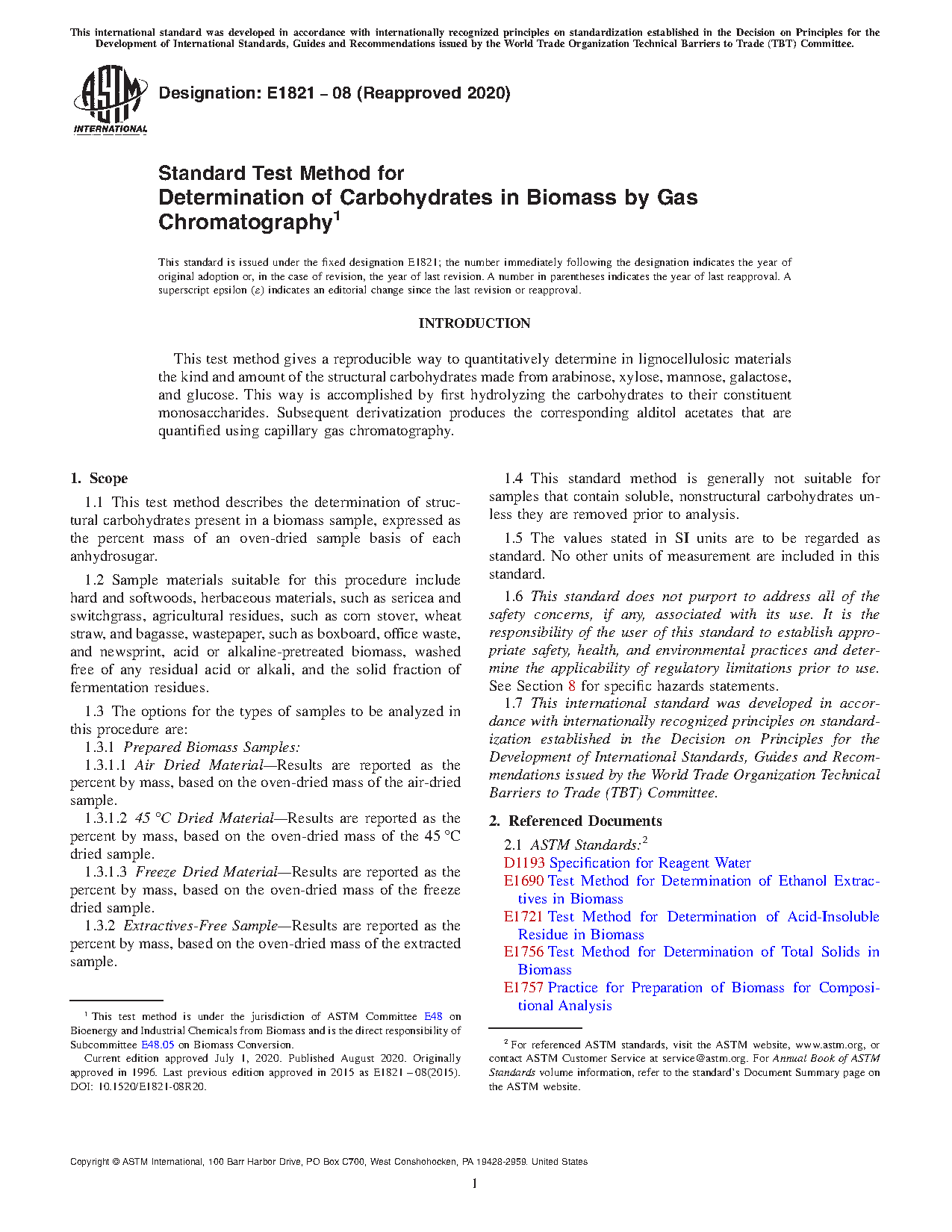 1.1 This test method describes the determination of structural carbohydrates present in a biomass sample, expressed as the percent mass of an oven-dried sample basis of each anhydrosugar.