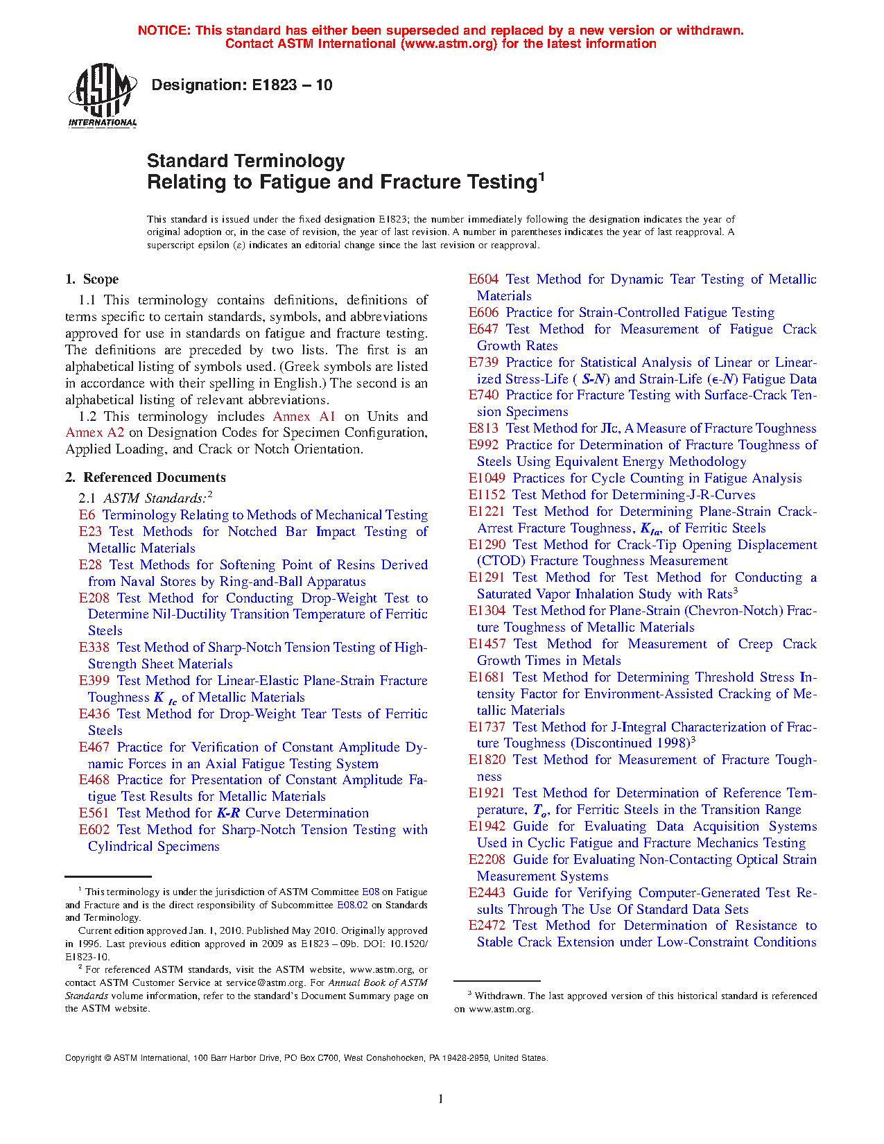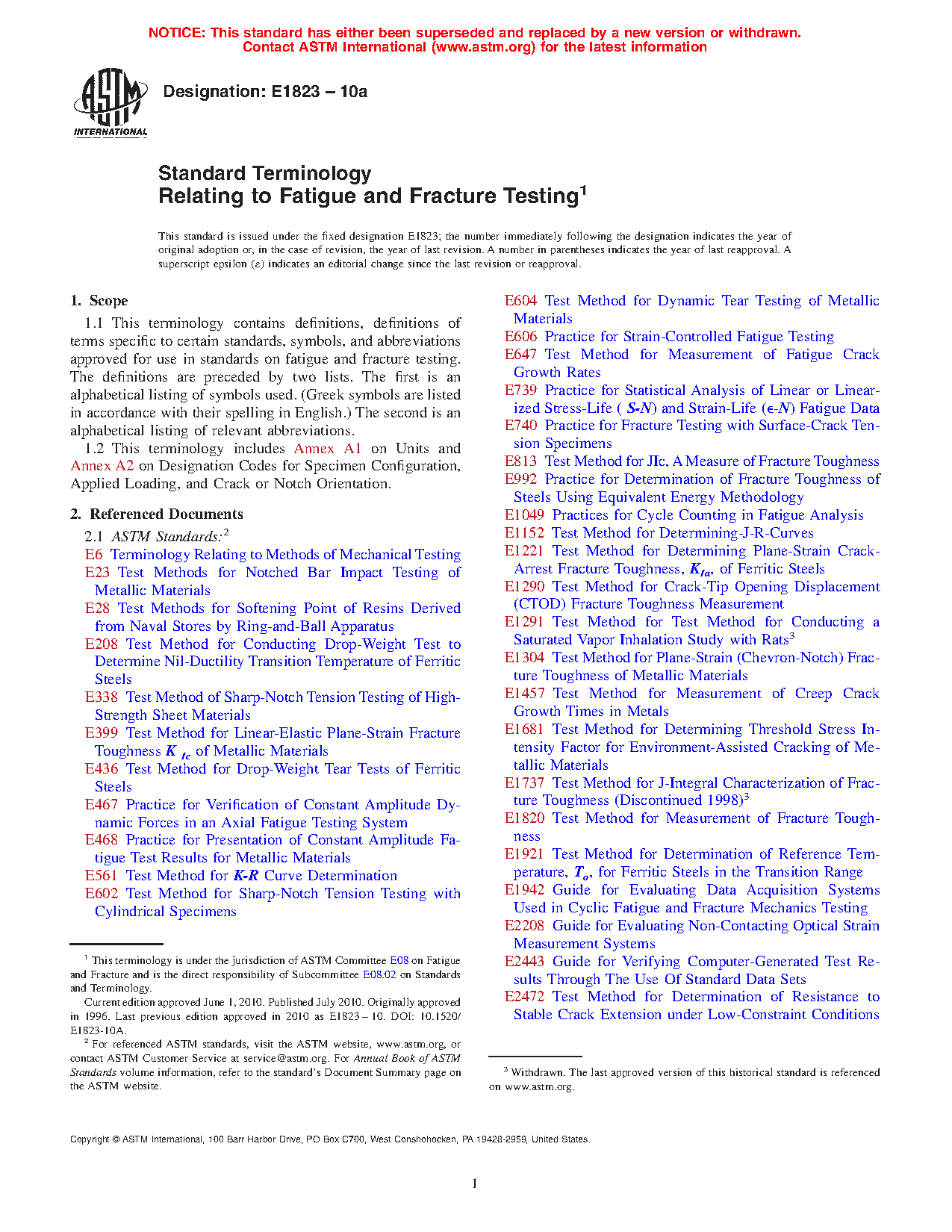 1.2 This terminology includes Annex A1 on Units and Annex A2 on Designation Codes for Specimen Configuration, Applied Loading, and Crack or Notch Orientation.