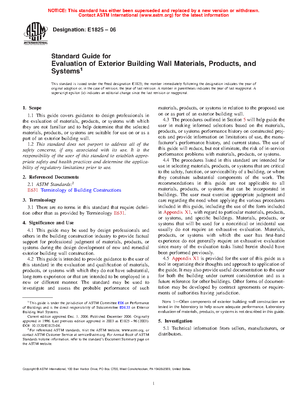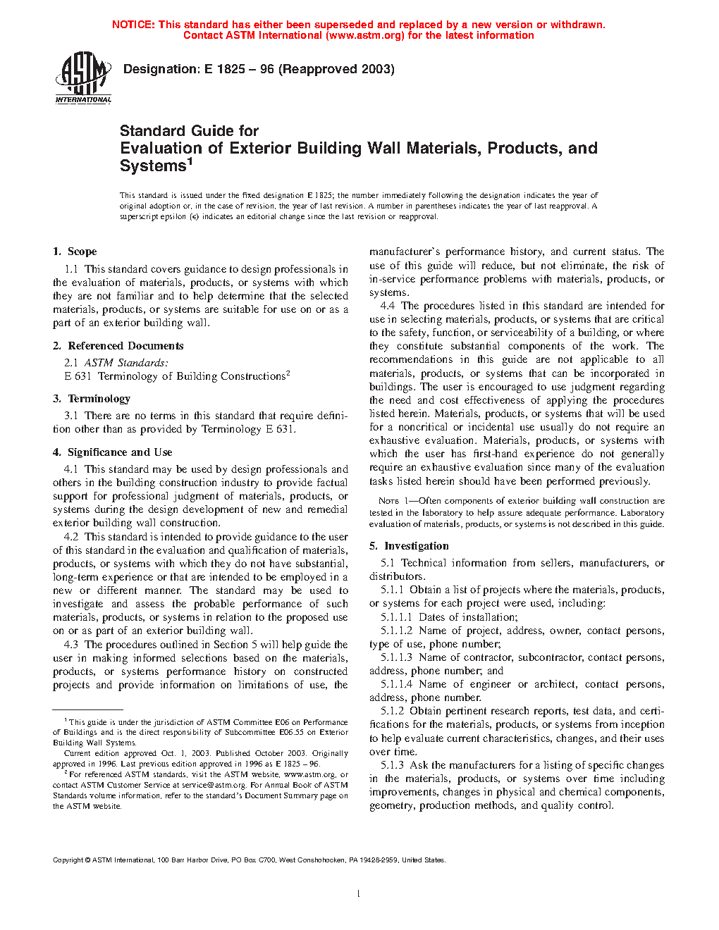 1.1 This guide covers guidance to design professionals in the evaluation of materials, products, or systems with which they are not familiar and to help determine that the selected materials, products, or systems are suitable for use on or as a part of an exterior building wall.