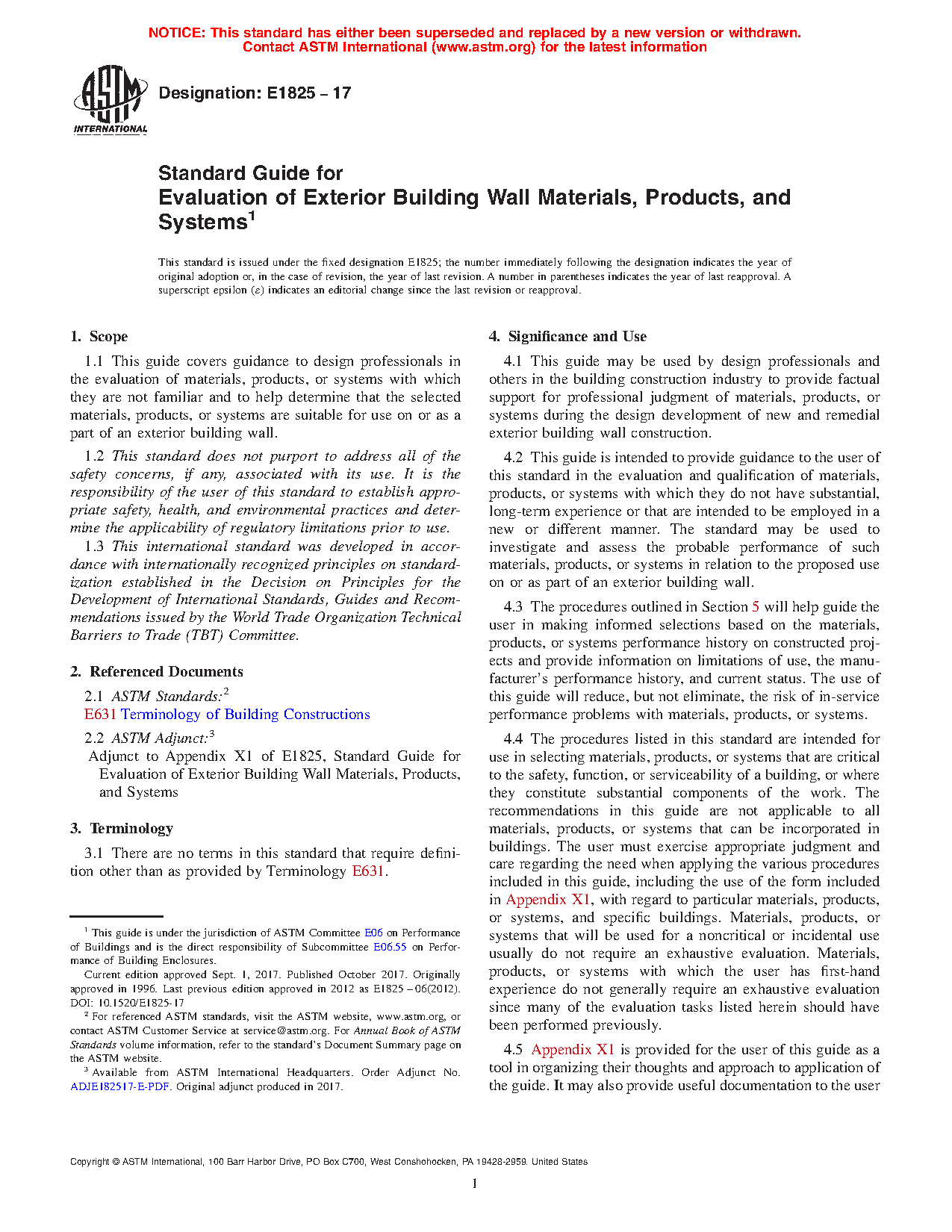 1.1 This guide covers guidance for use in the evaluation of materials, products, or systems with which they are not familiar and to help determine that the selected materials, products, or systems are suitable for use on or as a part of a building’s exterior enclosure.