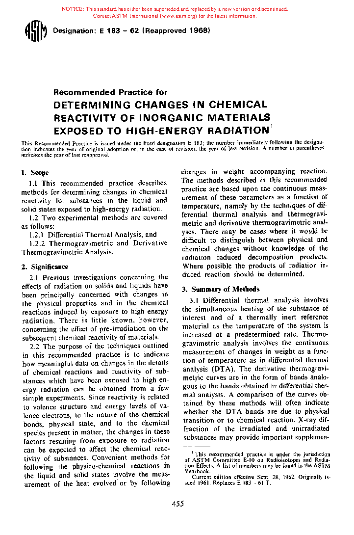 Recommended Practice for Determining Changes in Chemical Reactiovity of Inorganic Materials Exposed to High-Energy Radiation (Withdrawn 1975)