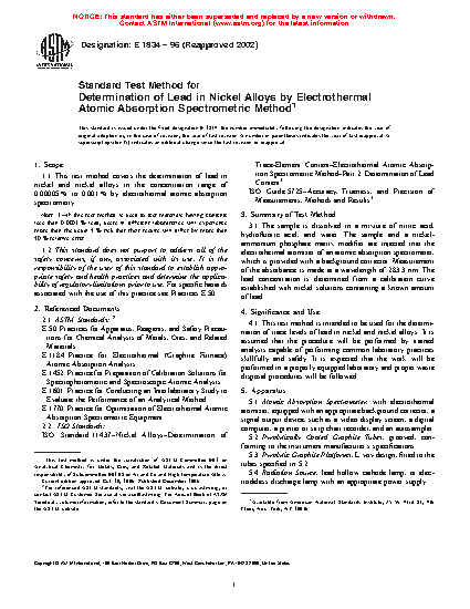 1.1 This test method describes the graphite furnace atomic absorption spectrometric analysis of nickel, such as specified by ASTM Committee B02, and having chemical compositions within the following limits: