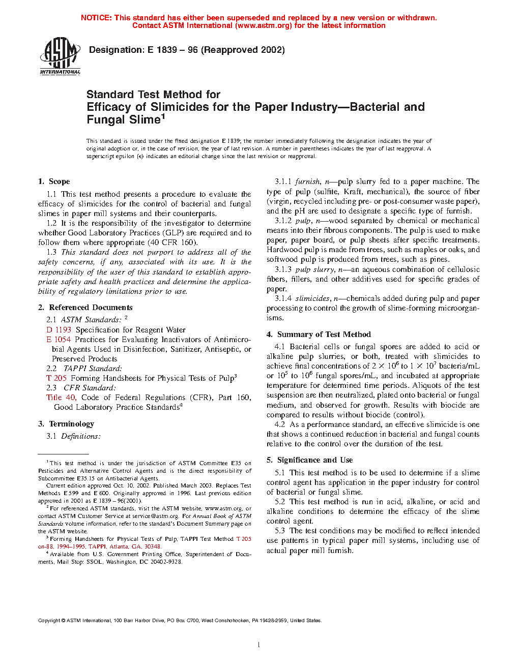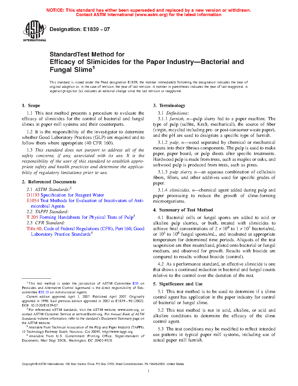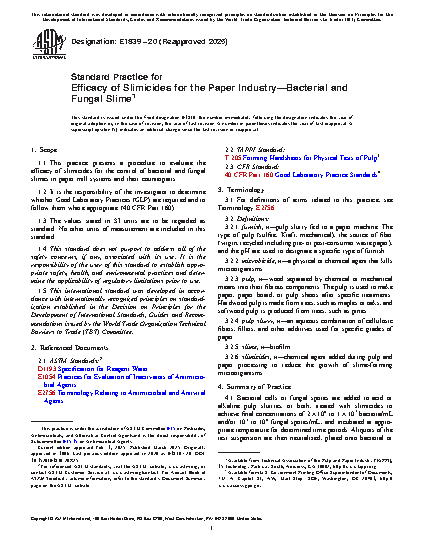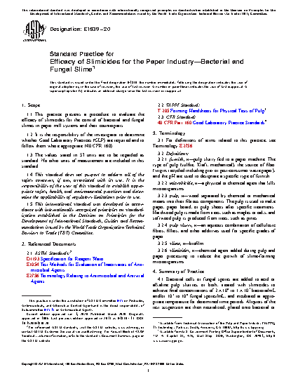 1.1 This test method presents a procedure to evaluate the efficacy of slimicides for the control of bacterial and fungal slimes in paper mill systems and their counterparts.