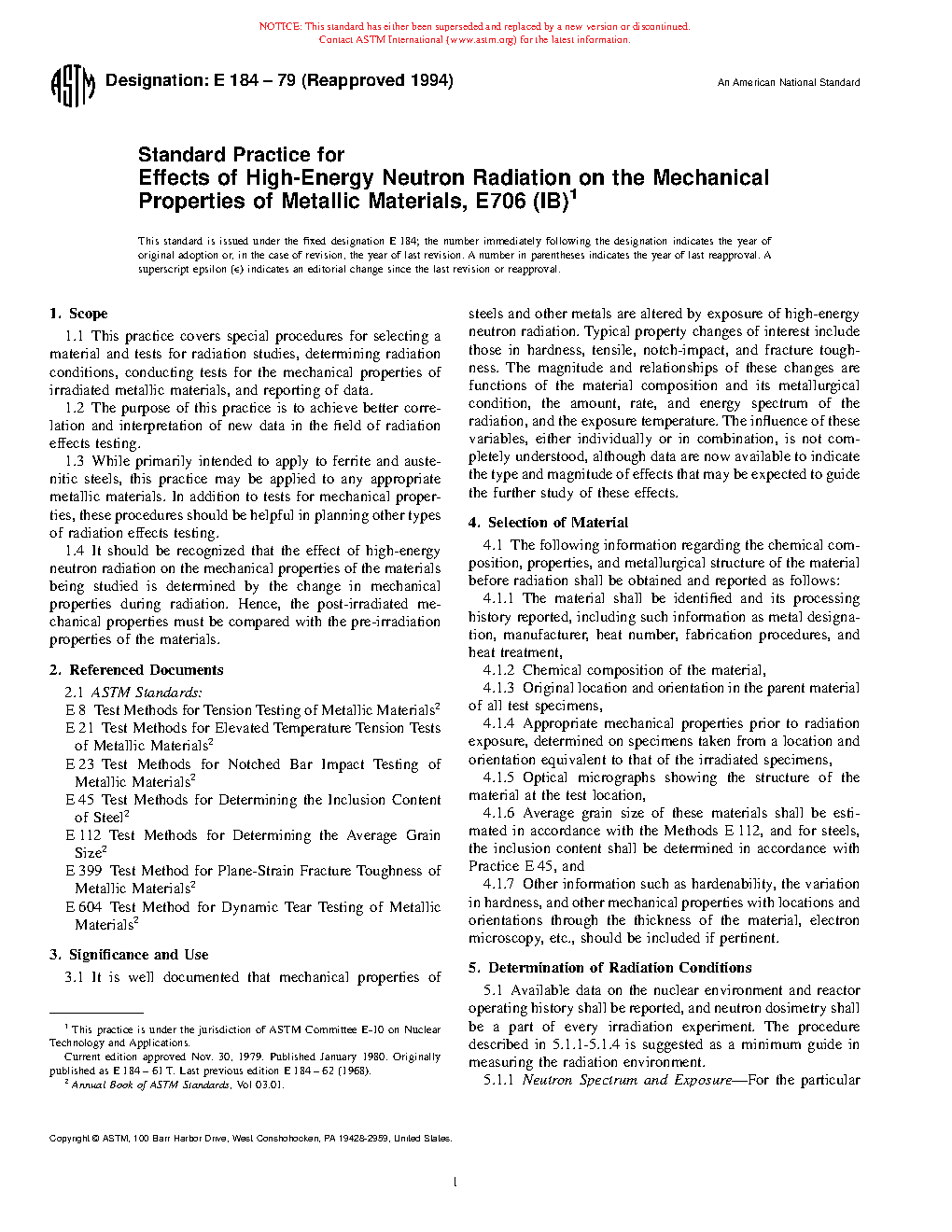 1.1 This practice covers special procedures for selecting a material and tests for radiation studies, determining radiation conditions, conducting tests for the mechanical properties of irradiated metallic materials, and reporting of data.