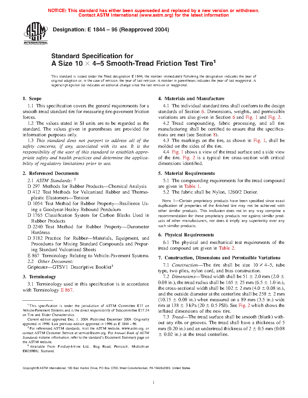1.1 This specification covers the general requirements for a smooth-tread standard tire for measuring tire-pavement friction forces.