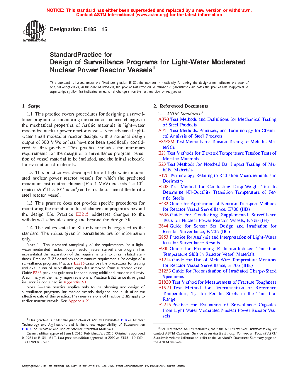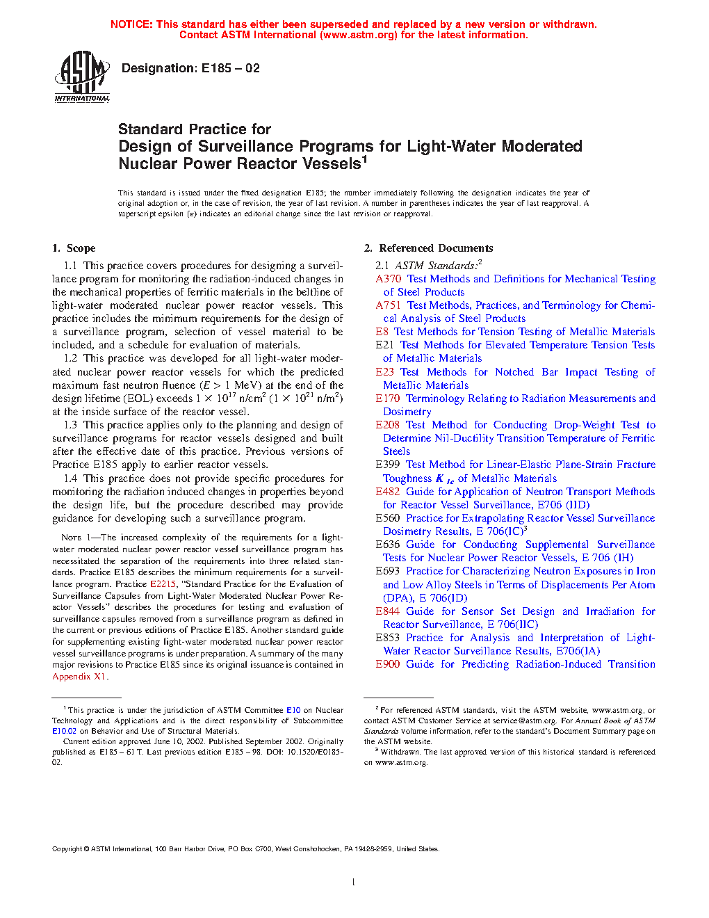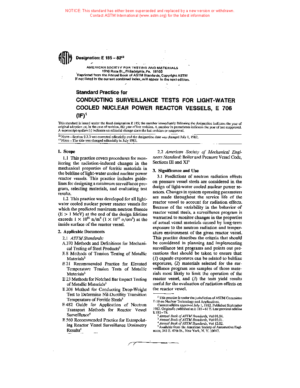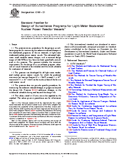 1.2 This practice was developed for all light-water cooled nuclear power reactor vessels for which the predicted maximum neutron fluence ( > 1 MeV) at the end of the design lifetime exceeds 1 X 10 17 n/cm (1 X 10 21 n/m ) at the inside surface of the reactor vessel.
