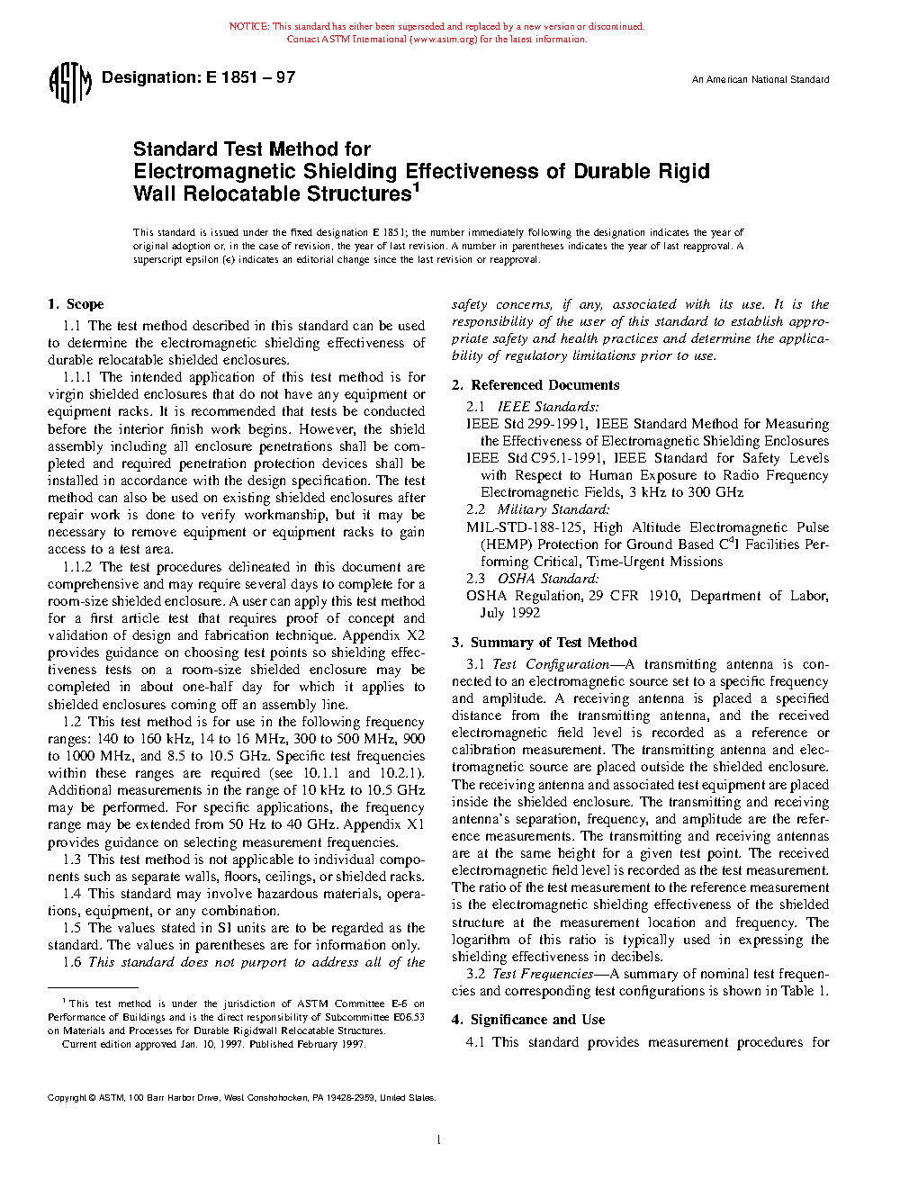 1.3 This test method is not applicable to individual components such as separate walls, floors, ceilings, or shielded racks.