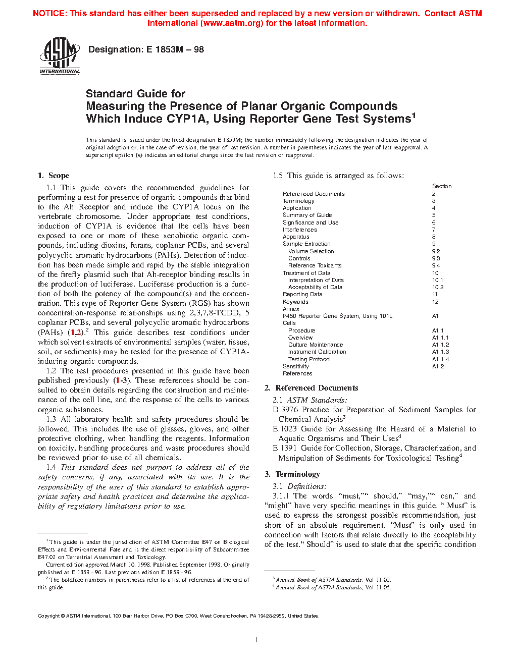 1.2 The test procedures presented in this guide have been published previously (4, 5 ) and established as EPA Method 4425 (6). These references should be consulted to obtain details regarding the construction and maintenance of the cell line, and the response of the cells to various organic substances.