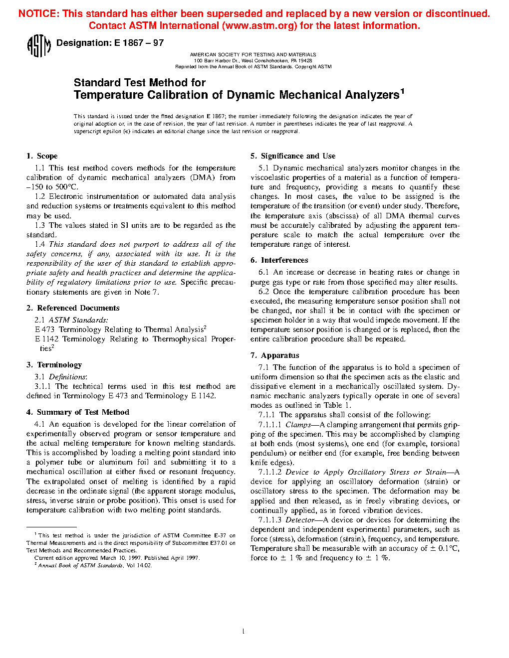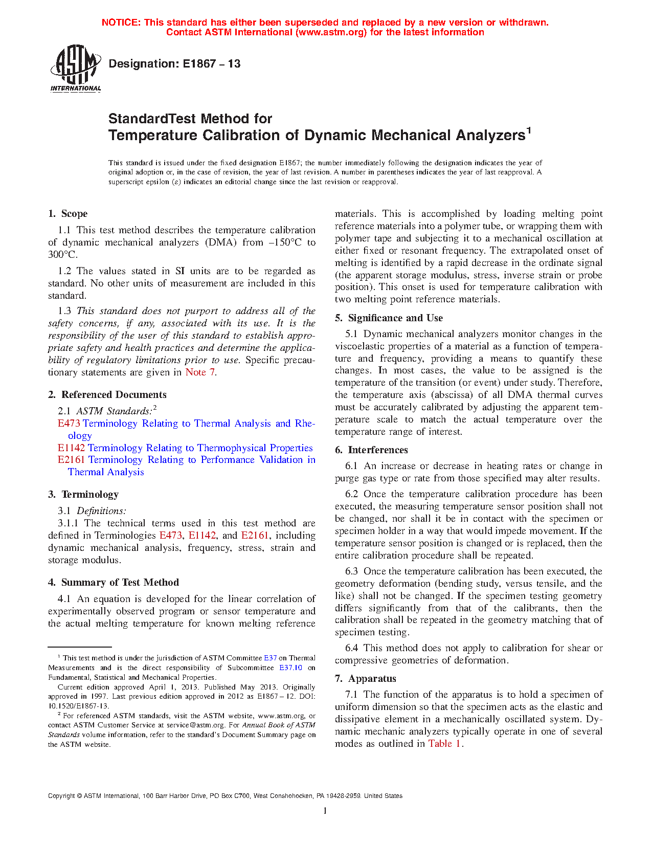 1.1 These test methods describes the temperature calibration of dynamic mechanical analyzers (DMA) from –100 °C to 300 °C.