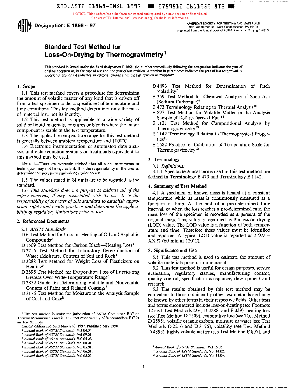 5.3 The results obtained by these test methods may be equivalent to those obtained by other test methods and may be known by other terms in their respective fields. Other tests and terms encountered include loss-on-heating (see Footnote 5 and Test Methods D6, D2288, and E359); heating loss (see Test Methods D1509); evaporative loss (see Test Method D2595); volatile organic carbon, moisture, or water (see Test Methods D2216 and D3175); volatility (see Test Method D4893); highly volatile matter (see Test Method E897); and volatile content (see Guide D2832).
