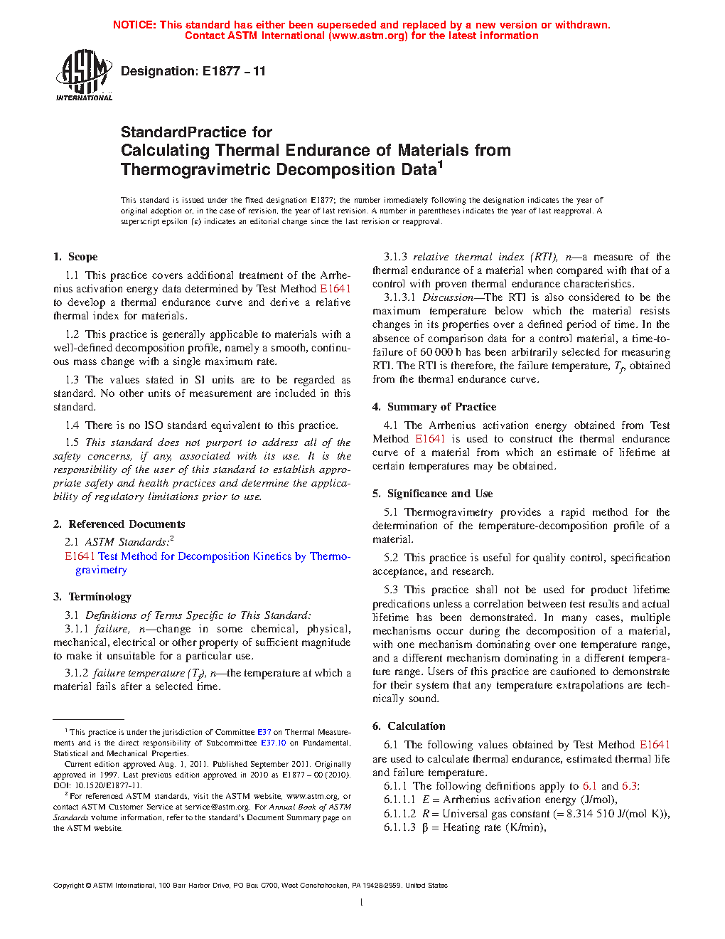 5.6 This practice shall not be used for product lifetime predications unless a correlation between test results and actual lifetime has been demonstrated. In many cases, multiple mechanisms occur during the decomposition of a material, with one mechanism dominating over one temperature range, and a different mechanism dominating in a different temperature range. Users of this practice are cautioned to demonstrate for their system that any temperature extrapolations are technically sound.