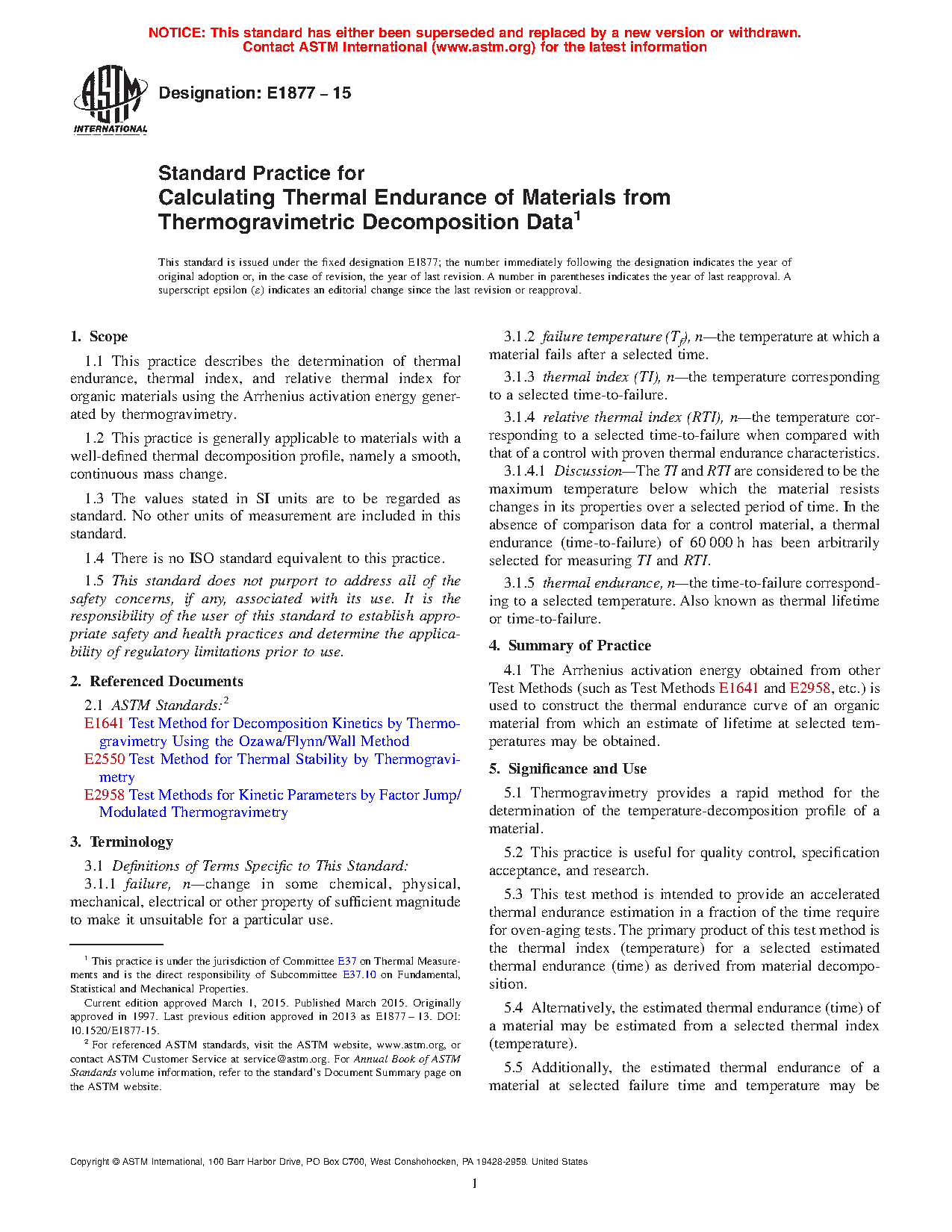 5.4 Alternatively, the estimated thermal endurance (time) of a material may be estimated from a selected thermal index (temperature).