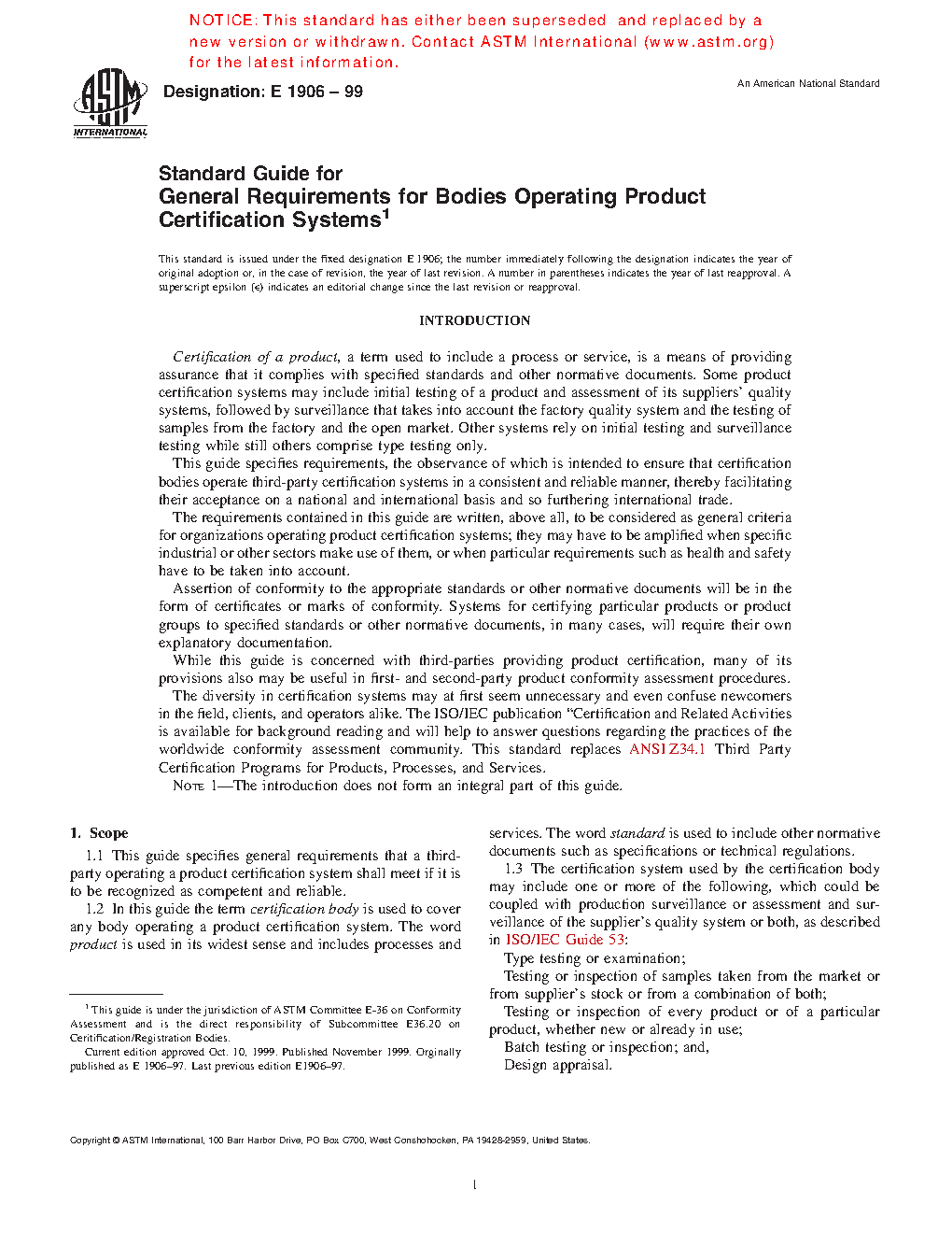 Standard Guide for General Requirements for Bodies Operating Product Certification Systems (Withdrawn 2004)