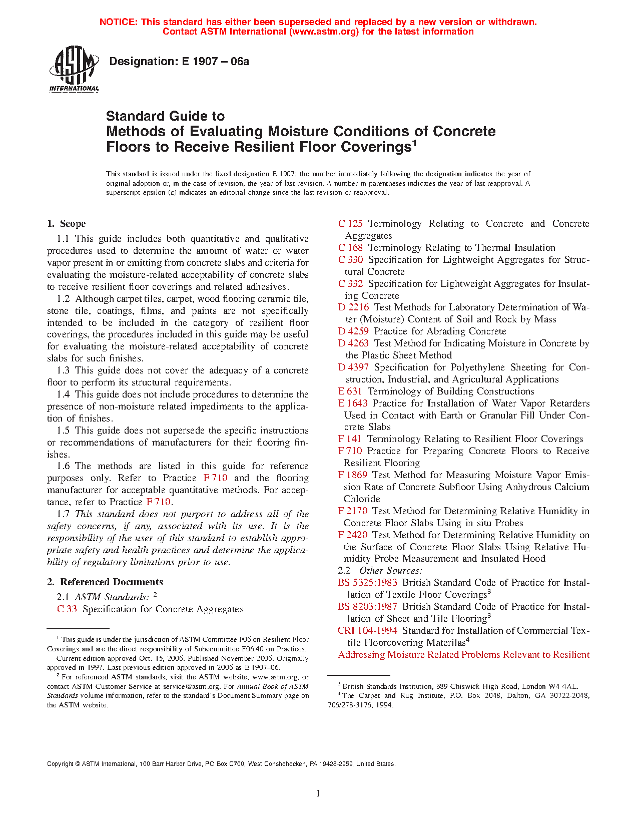 1.6 The methods are listed in this guide for reference purposes only. Refer to Practice F 710 and the flooring manufacturer for acceptable quantitative methods. For acceptance, refer to Practice F 710.