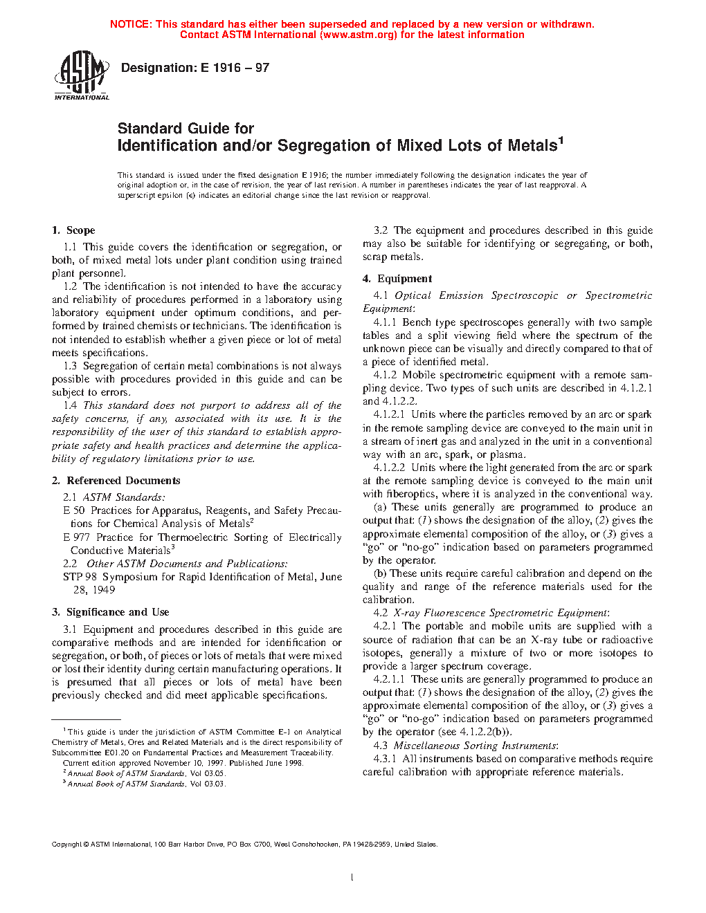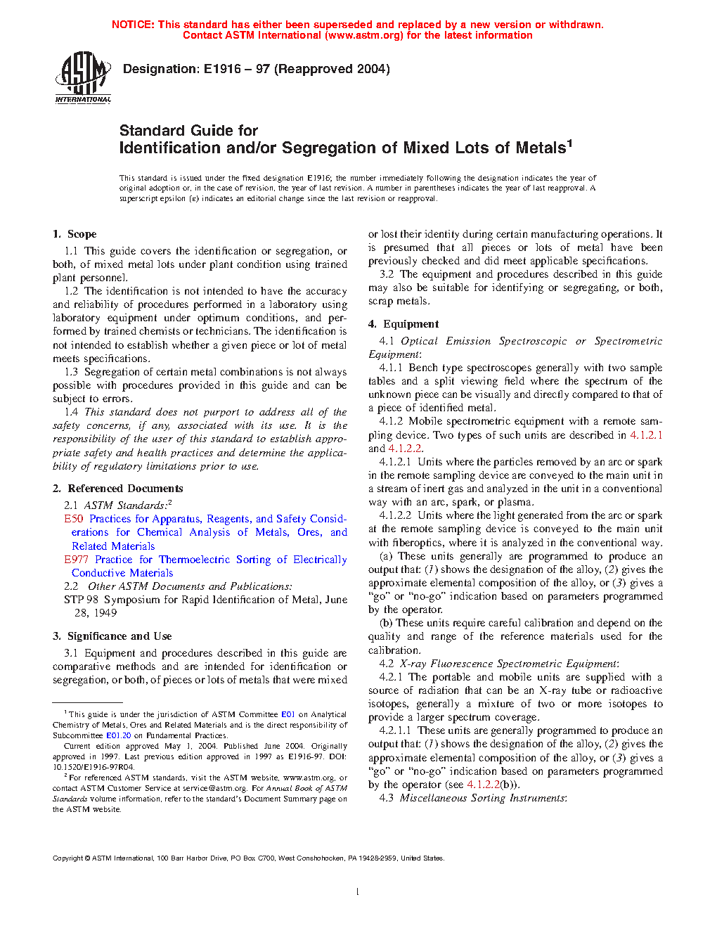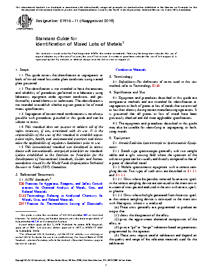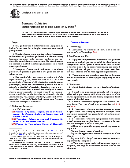 1.1 This guide covers the identification or segregation, or both, of mixed metal lots under plant condition using trained plant personnel.