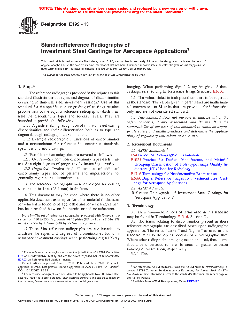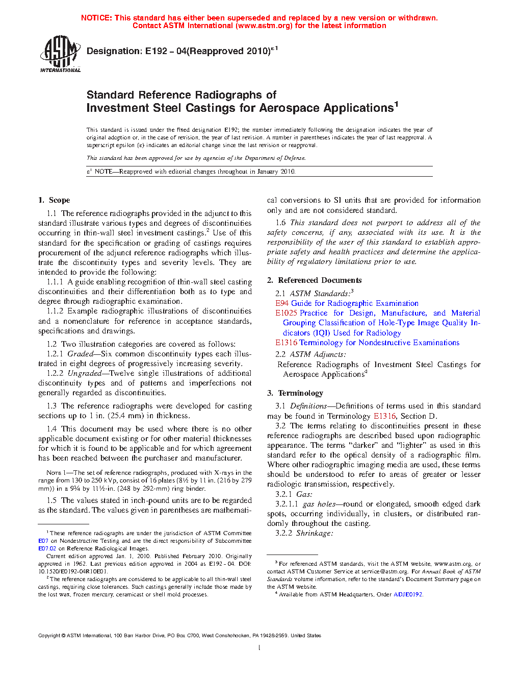 1.1.1 A guide enabling recognition of thin-wall steel casting discontinuities and their differentiation both as to type and degree through radiographic examination.