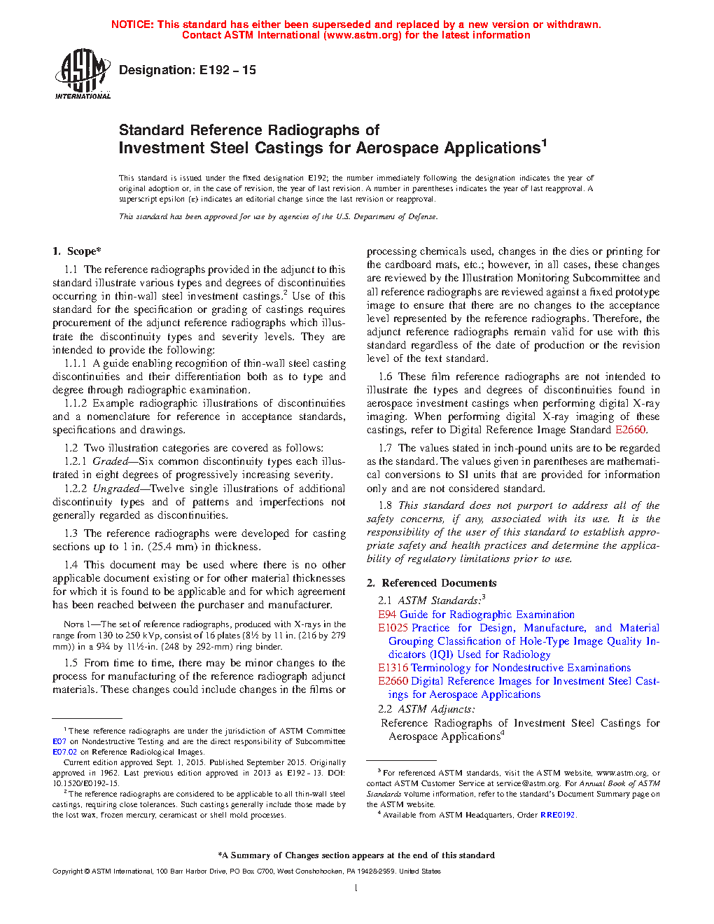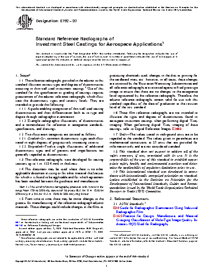 1.6 These film reference radiographs are not intended to illustrate the types and degrees of discontinuities found in aerospace investment castings when performing digital X-ray imaging. When performing digital X-ray imaging of these castings, refer to Digital Reference Images E2660.