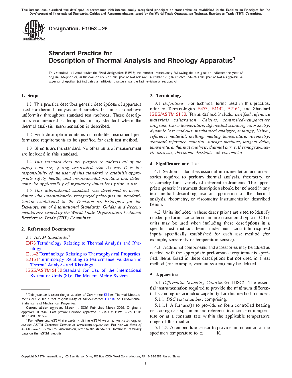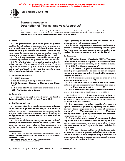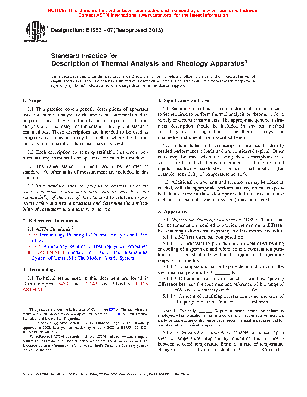 4.1 Section 5 identifies essential instrumentation and accessories required to perform thermal analysis, rheometry, or viscometry for a variety of different instruments. The appropriate generic instrument description should be included in any test method describing use or application of the thermal analysis, rheometry, or viscometry instrumentation described herein.