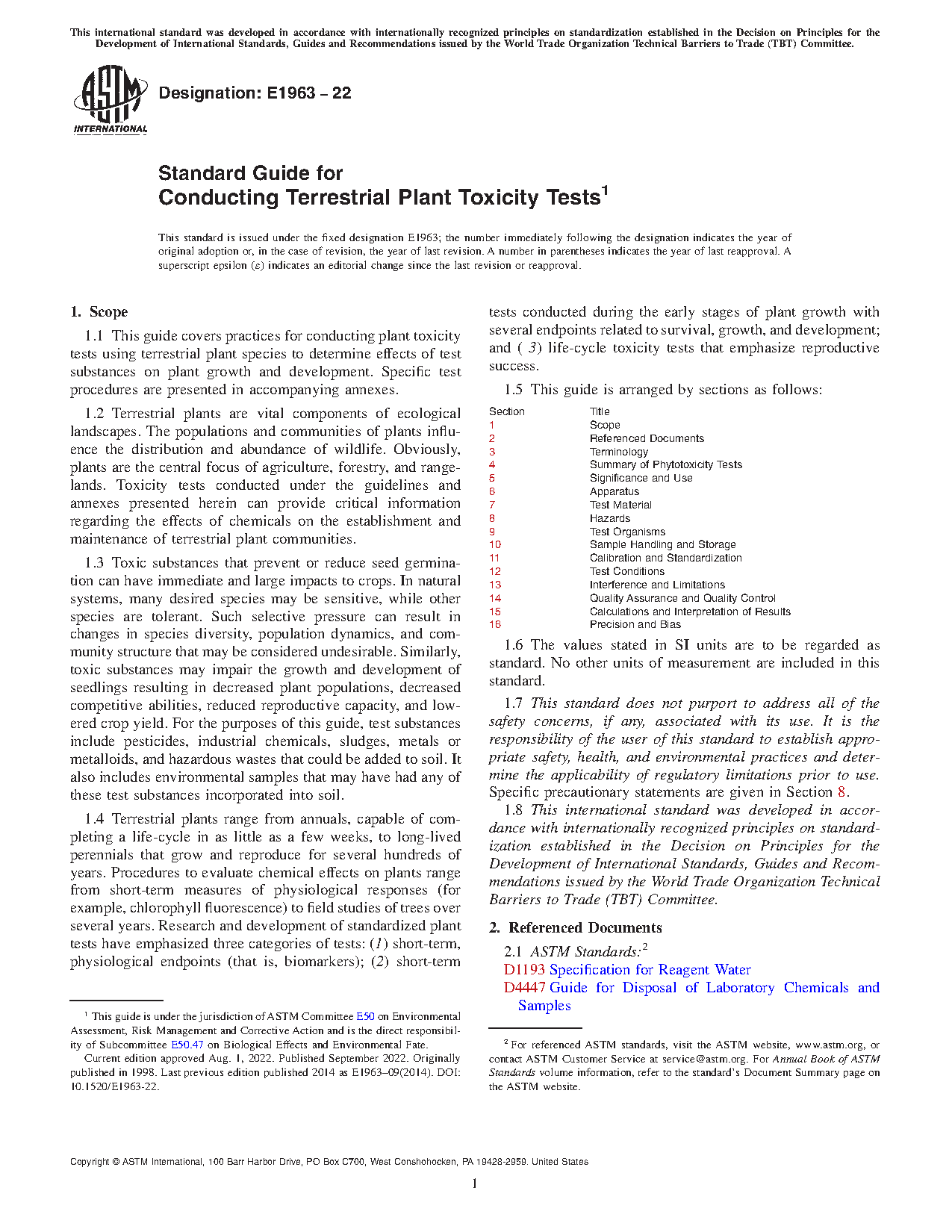 1.1 This guide covers practices for conducting plant toxicity tests using terrestrial plant species to determine effects of test substances on plant growth and development. Specific test procedures are presented in accompanying annexes.