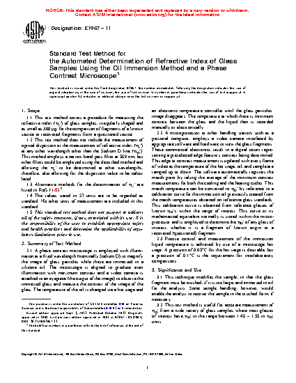 1.1 This test method covers a procedure for measuring and comparing the refractive index (η) at a fixed wavelength (λ) and temperature (T) (