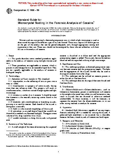 Standard Guide for Microcrystal Testing in the Forensic Analysis of Cocaine