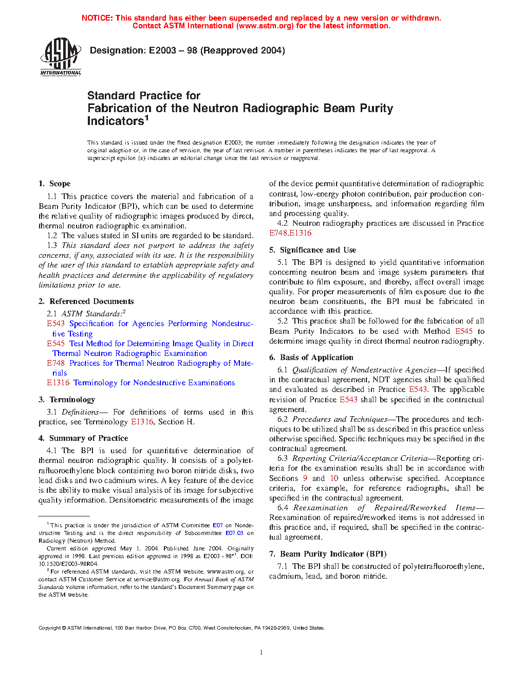 5.2 This practice shall be followed for the fabrication of all Beam Purity Indicators to be used with Test Method E545 to determine image quality in direct thermal neutron radiography.
