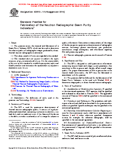 1.1 This practice covers the material and fabrication of a Beam Purity Indicator (BPI), which can be used to determine the relative quality of radiographic images produced by direct, thermal neutron radiographic examination.