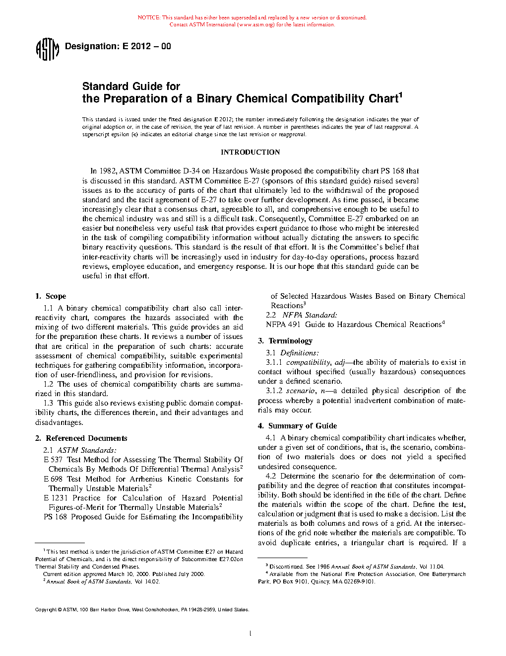5.3 The AIChE organization Center for Chemical Process Safety (CCPS) has recommended the use of this standard in one of their recent monographs (1).5 This work is currently available for free download from: http://www.osha.gov/SLTC/reactivechemicals/index.html.