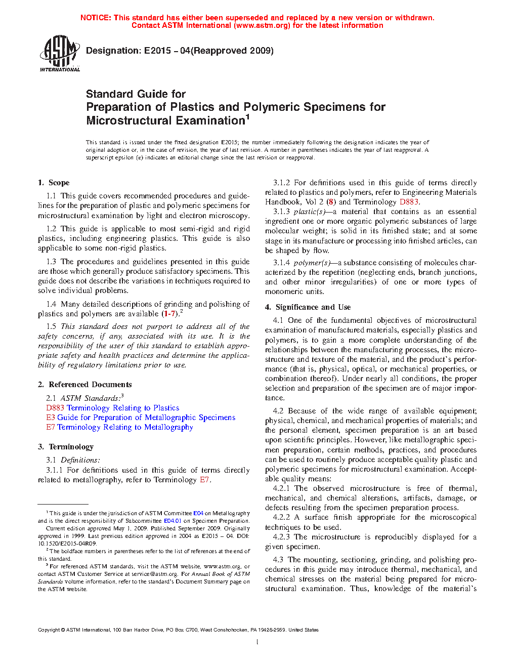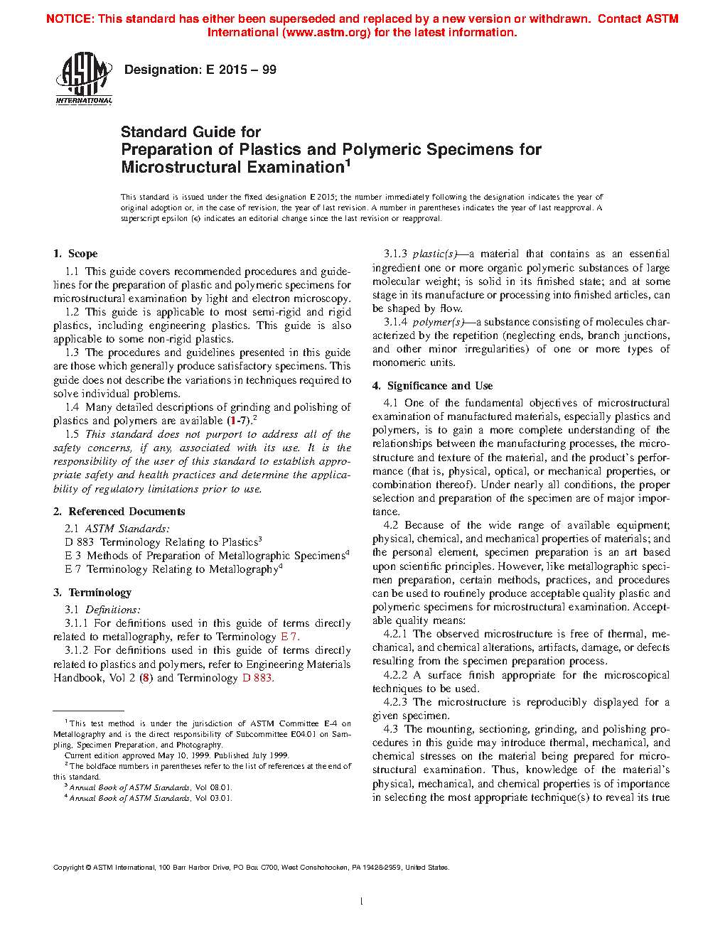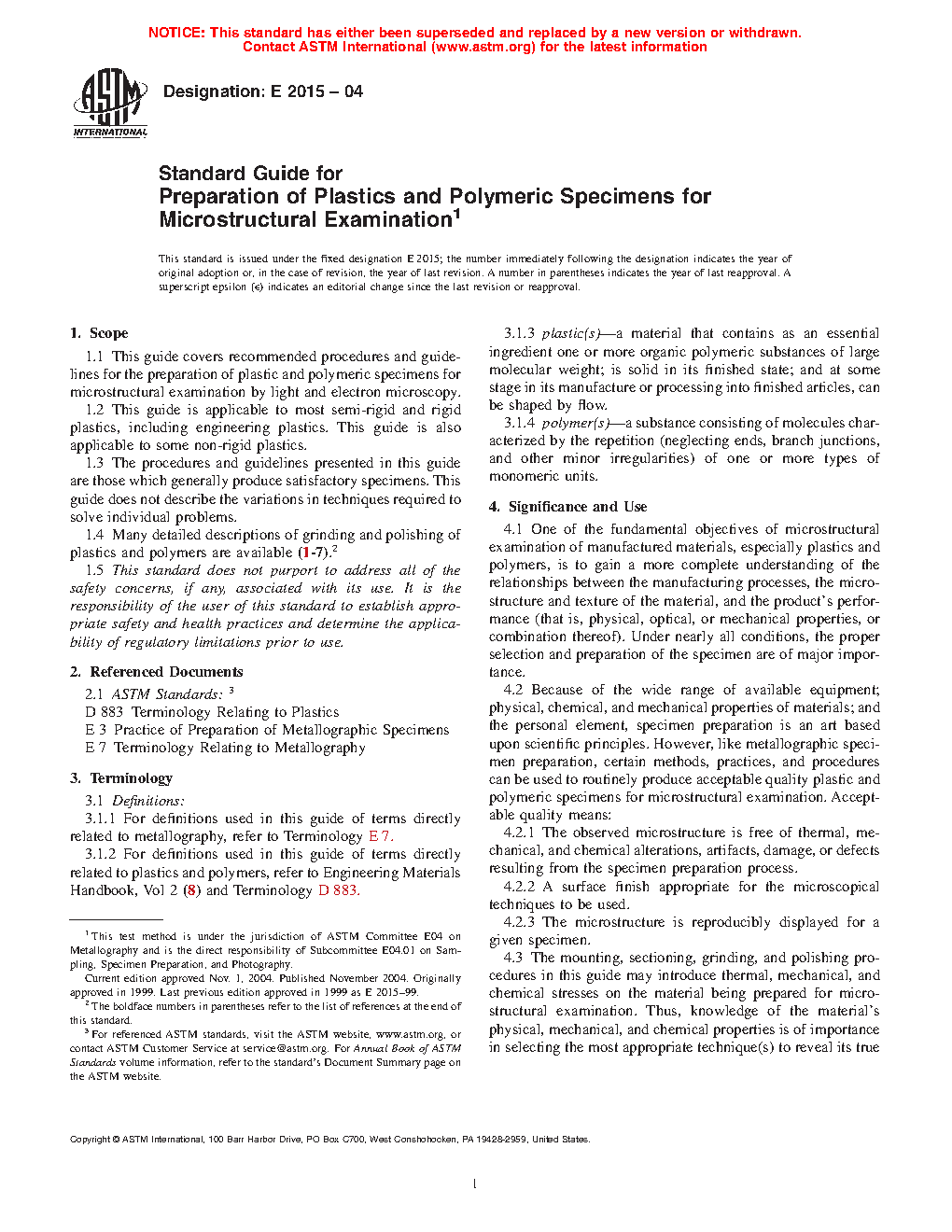 1.4 Many detailed descriptions of grinding and polishing of plastics and polymers are available (1-7).2