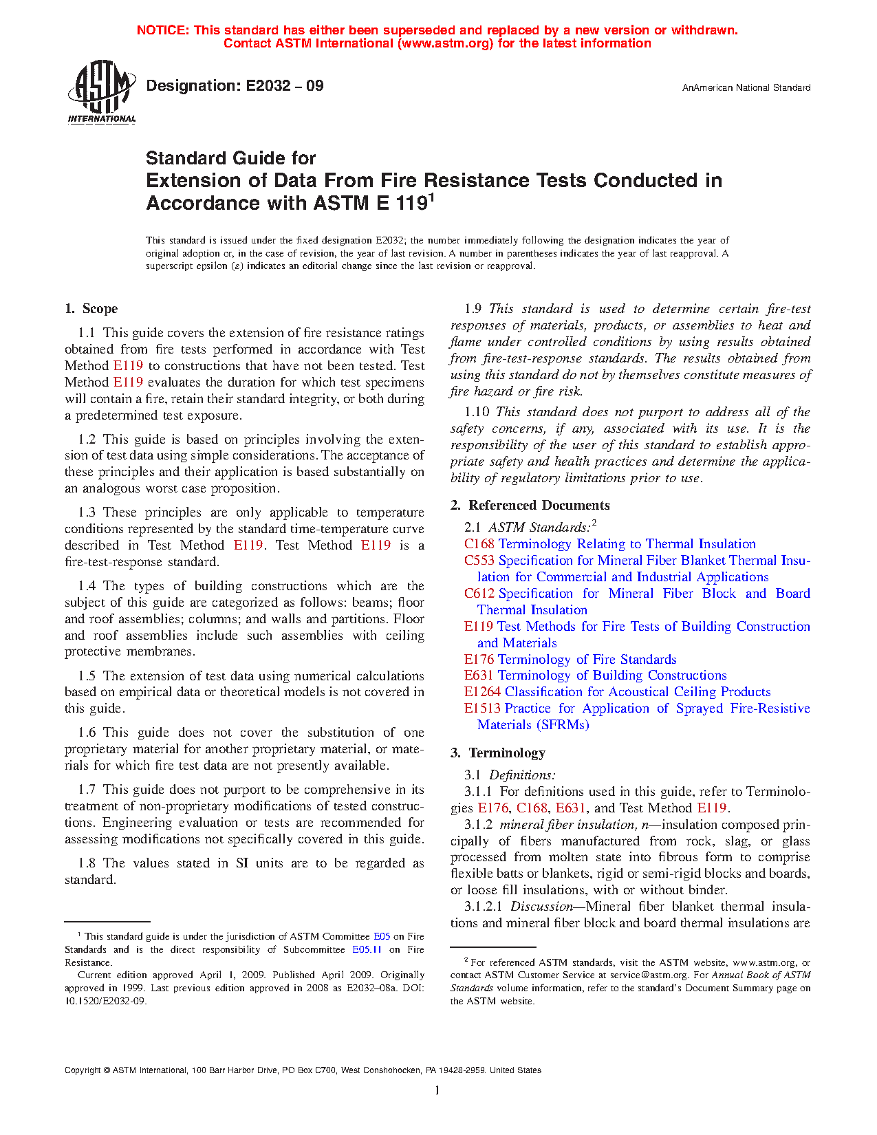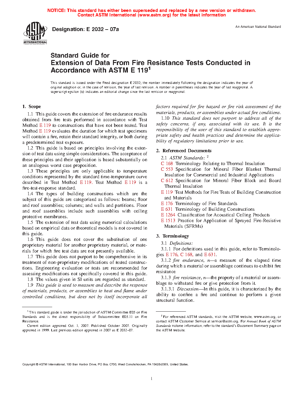 1.1 This guide covers the extension of fire endurance results obtained from fire tests performed in accordance with Test Method E 119 to constructions that have not been tested. Test Method E 119 evaluates the duration for which test specimens will contain a fire, retain their standard integrity, or both during a predetermined test exposure.
