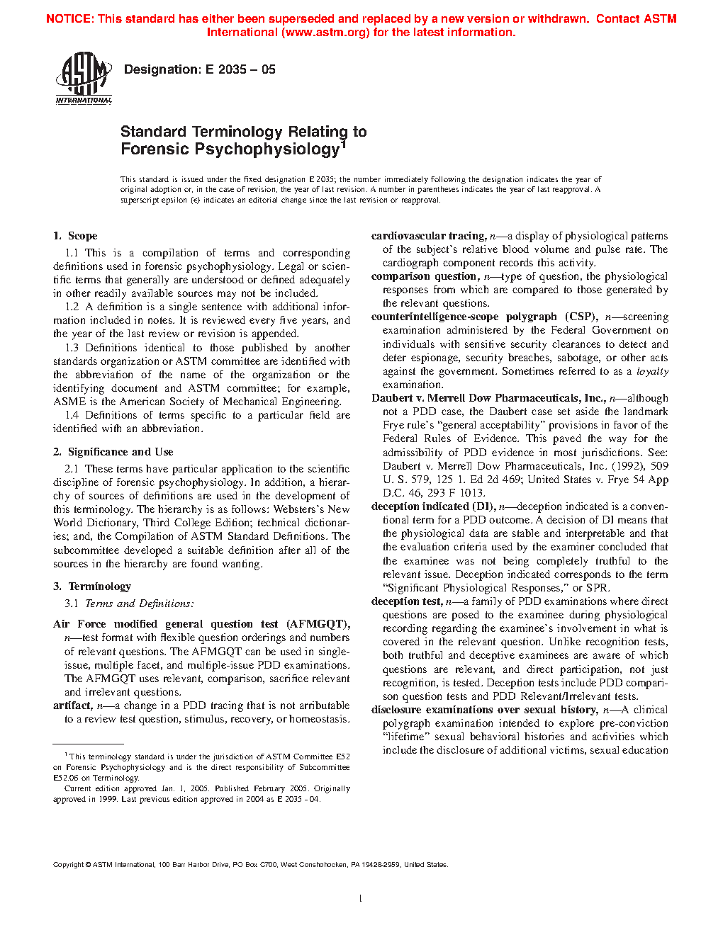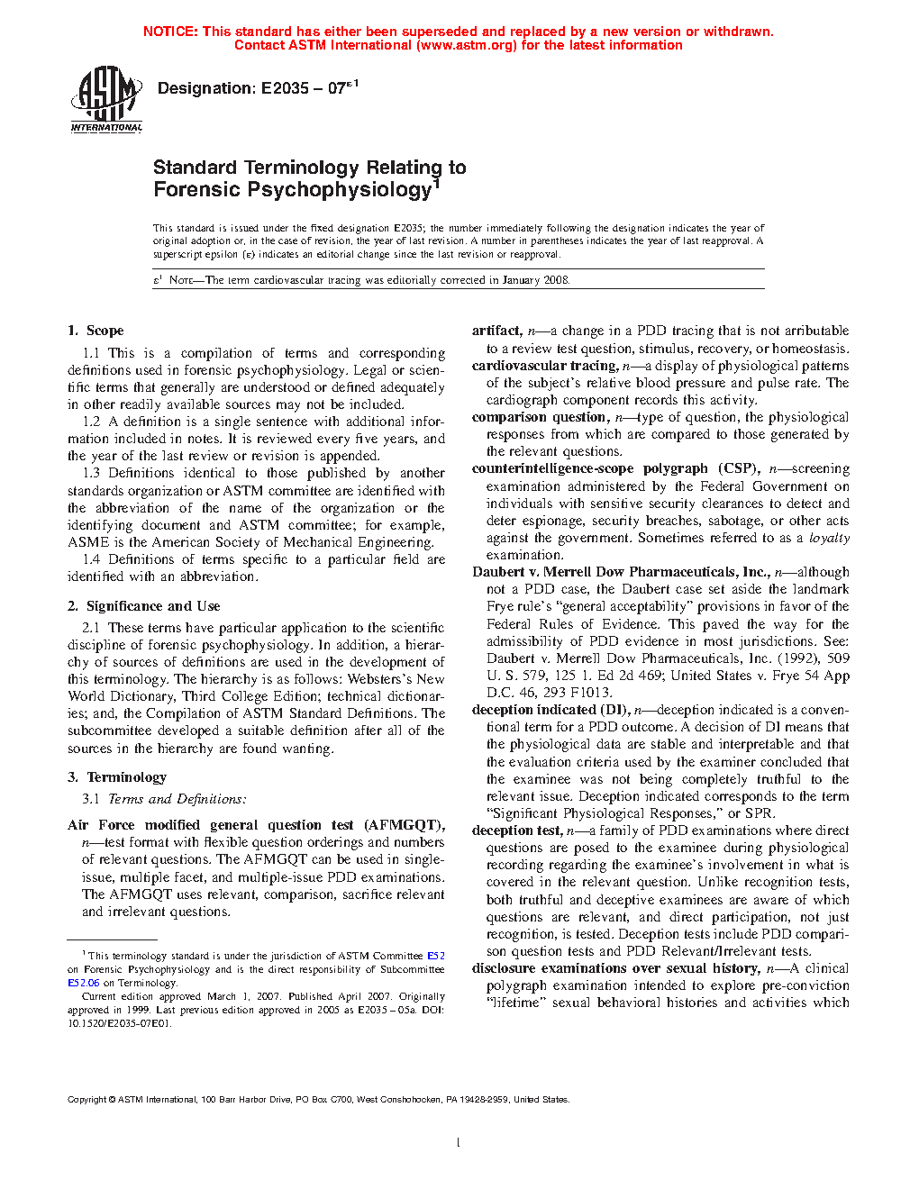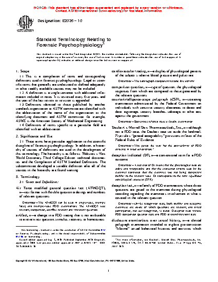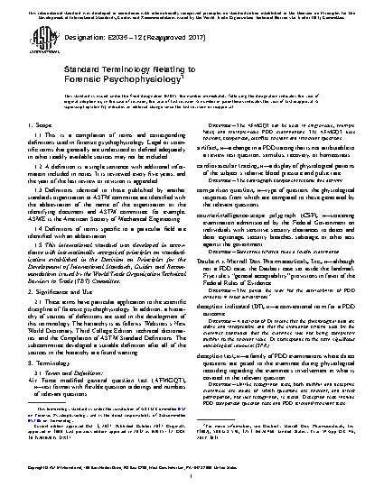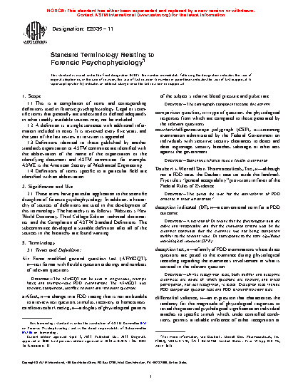 1.1 This is a compilation of terms and corresponding definitions used in forensic psychophysiology. Legal and scientific terms that generally are understood or defined adequately in other readily available sources may not be included.