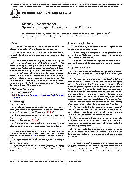 5.1 This test method is intended to provide a rapid means of determining the relative ability of a liquid agricultural spray mixture to spread on a test substrate.
