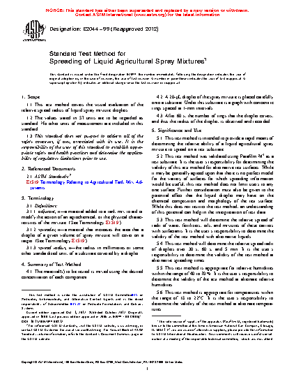 5.3 This test method will determine the relative spread of radii of water, fertilizers, oils, and mixtures of these carriers with surfactants. It is the user's responsibility to determine the validity of the test method with alternative liquids.