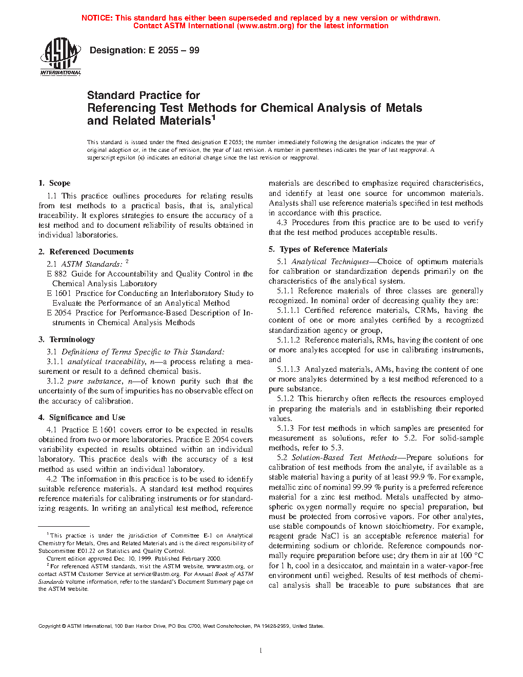 Standard Practice for Referencing Test Methods for Chemical Analysis of Metals and Related Materials (Withdrawn 2006)