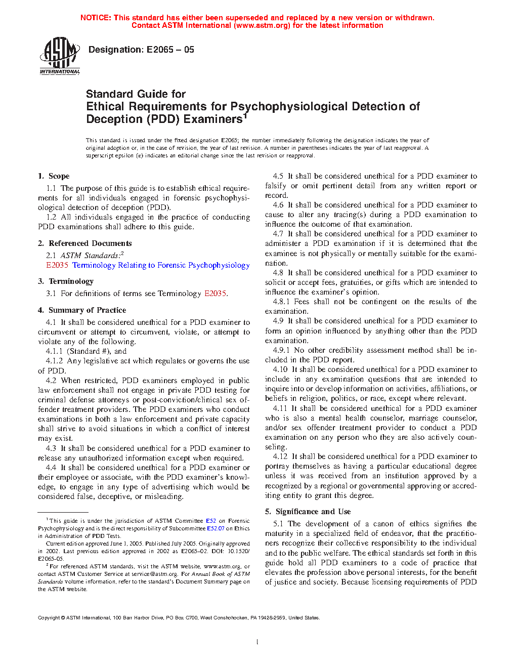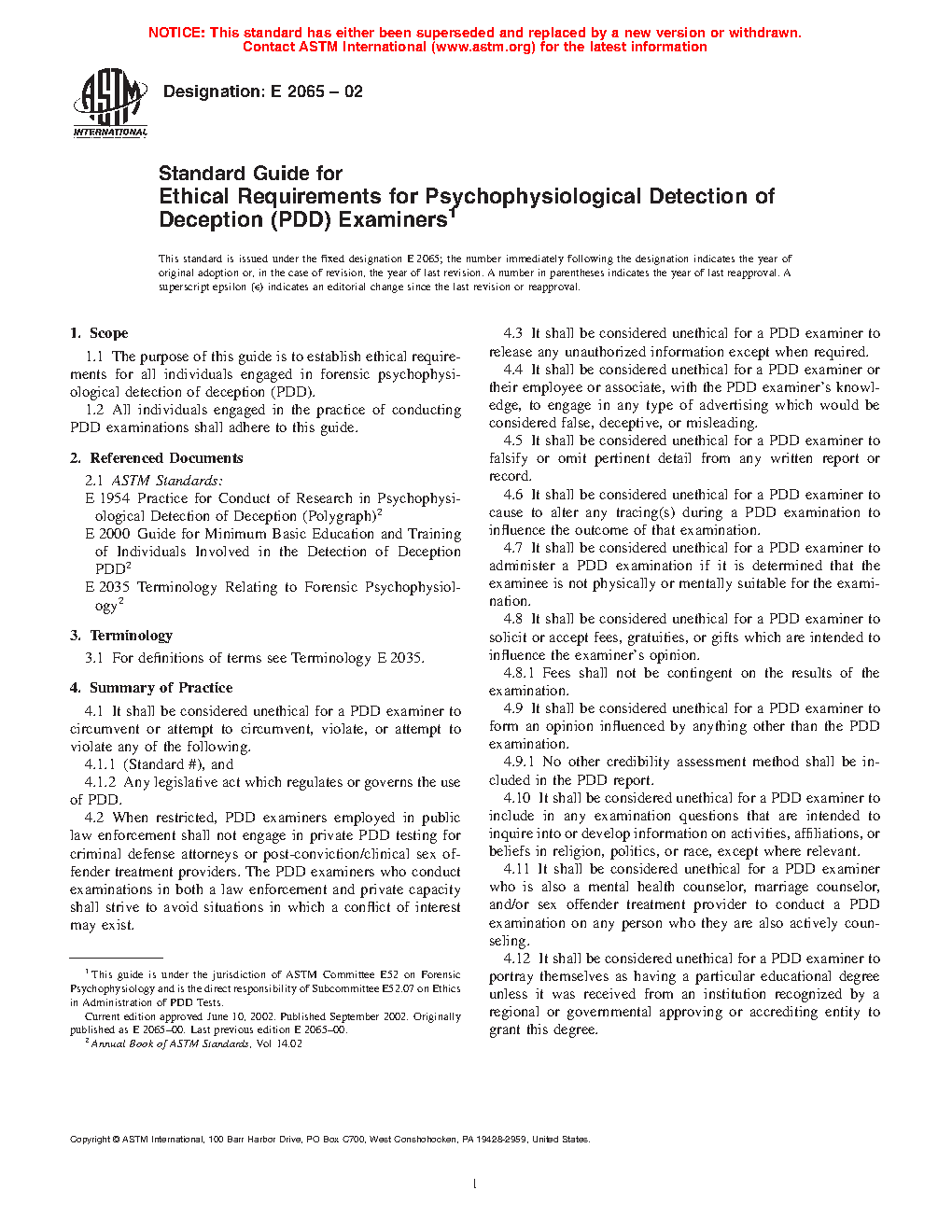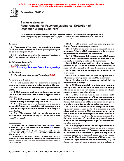 1.1 The purpose of this guide is to establish requirements for all individuals engaged in forensic psychophysiological detection of deception (PDD).