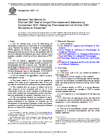 1.2 This test is applicable to new thermocouple materials over the temperature ranges normally associated with thermocouples and their extension wires. The table on Suggested Upper Temperature Limits for Protected Thermocouples in Specification E 230
