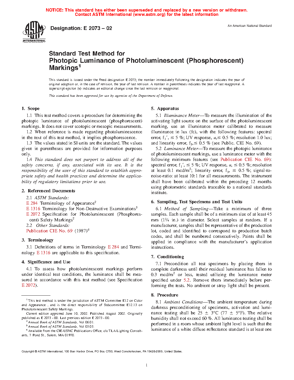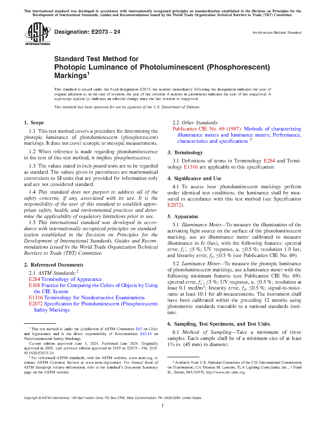 To assess how photoluminescent markings perform under identical test conditions, the luminance shall be measured in accordance with this test method (see Specification E 2072