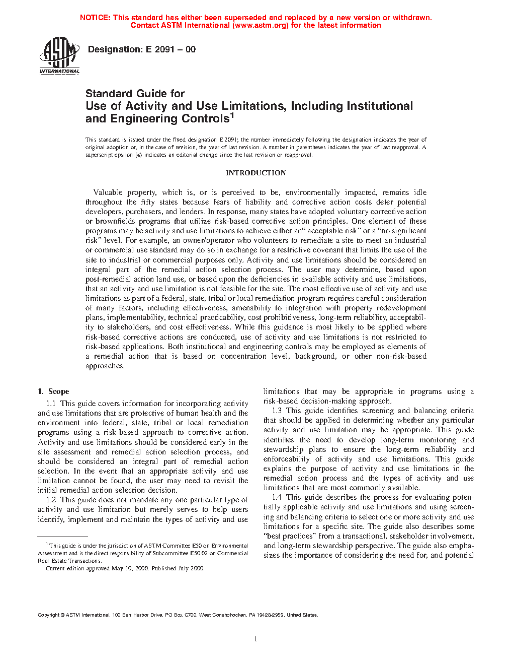 1.2 This guide does not mandate any one particular type of activity and use limitation but merely serves to help users identify, implement and maintain the types of activity and use limitations that may be appropriate in programs using a risk-based decision-making approach.