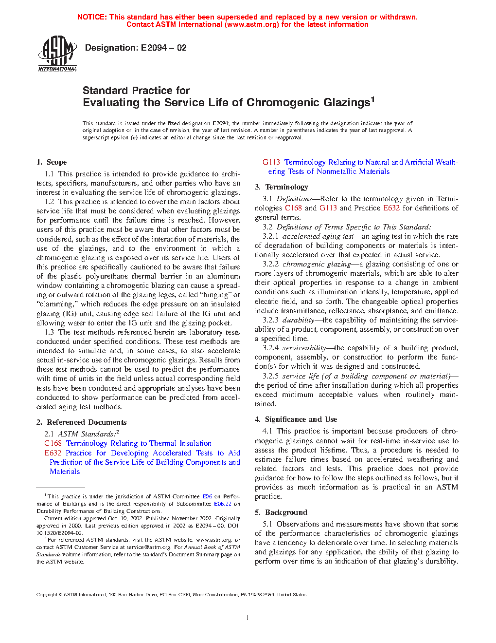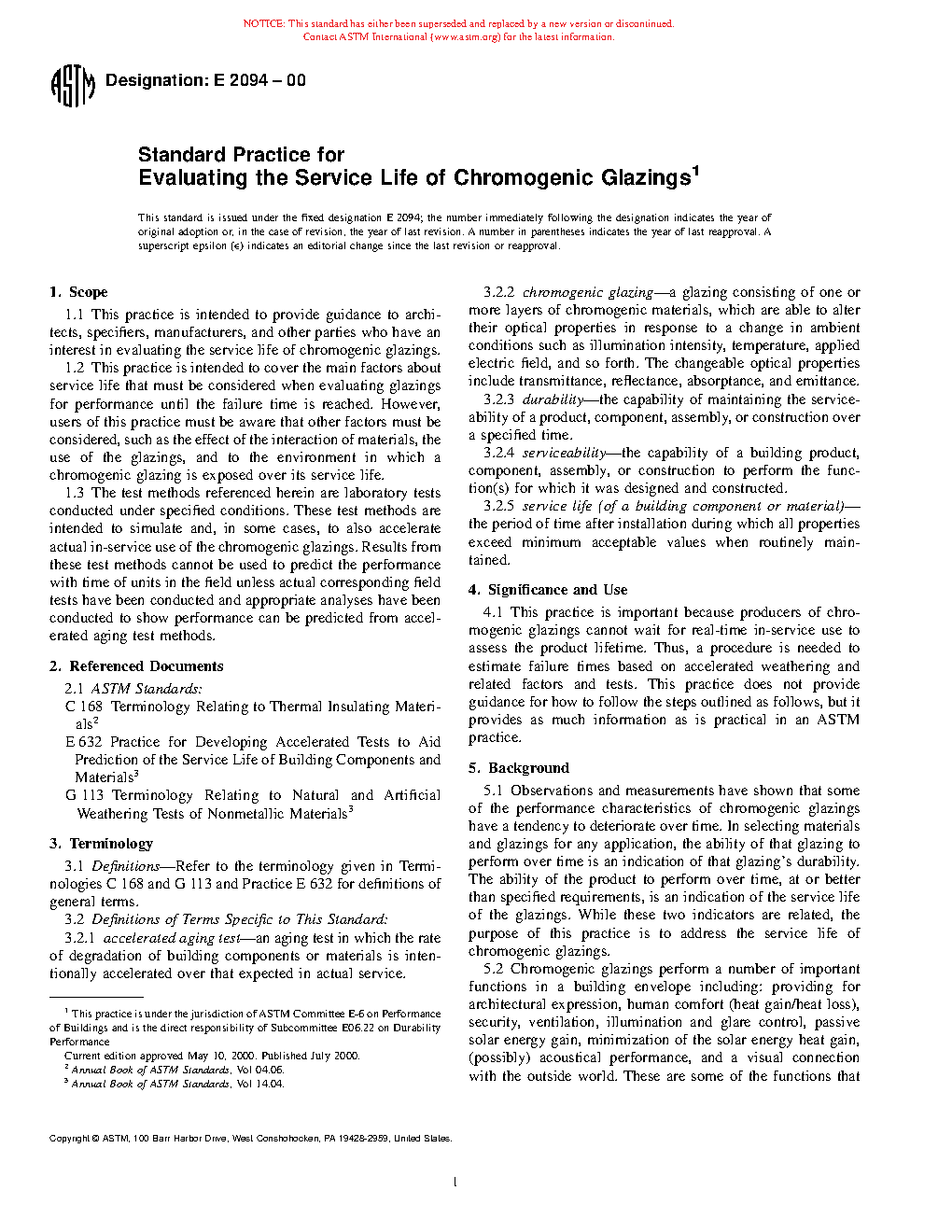 1.1 This practice is intended to provide guidance to architects, specifiers, manufacturers, and other parties who have an interest in evaluating the service life of chromogenic glazings.