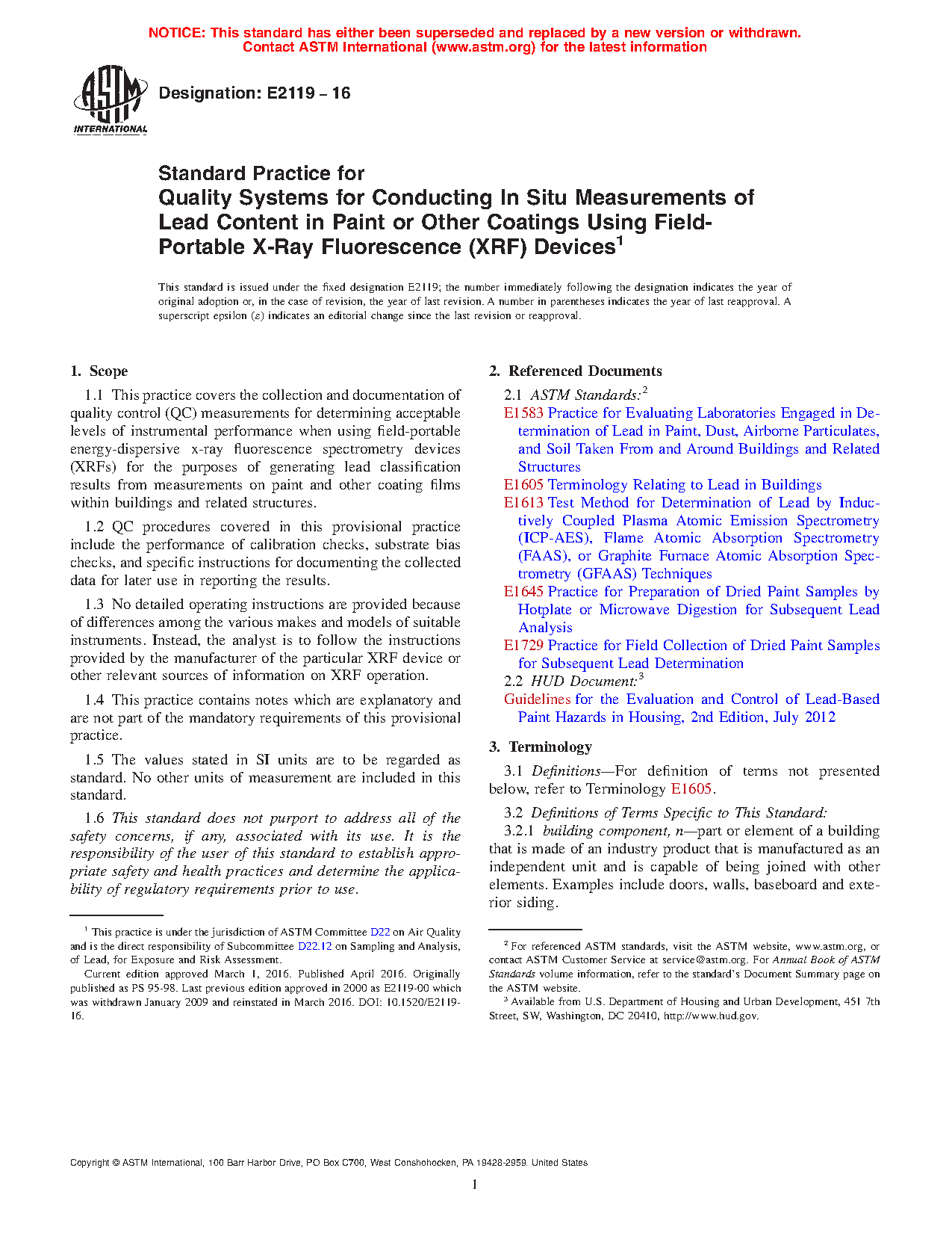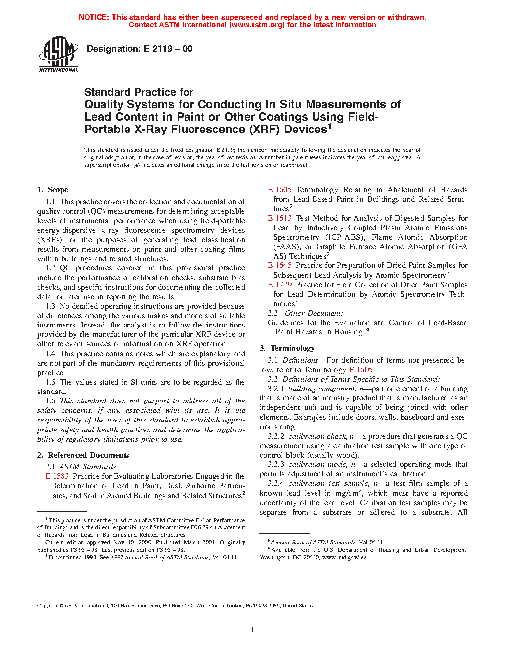 5.2 This practice is intended to supplement XRF instrument manufacturer protocols and Performance Characteristic Sheets (PCSs)4 through the use of QA and QC procedures to provide uniform lead testing practices among the wide variety of available field-portable XRF instruments.