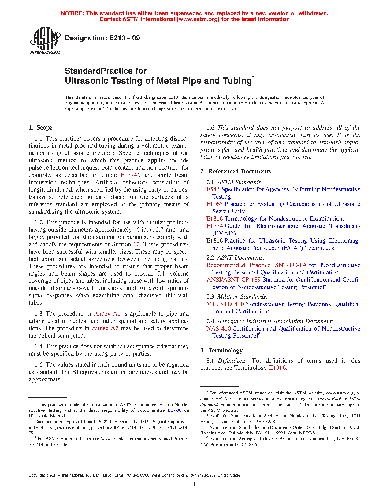 1.3 The procedure in Annex A1 is applicable to pipe and tubing used in nuclear and other special and safety applications. The procedure in Annex A2 may be used to determine the helical scan pitch.