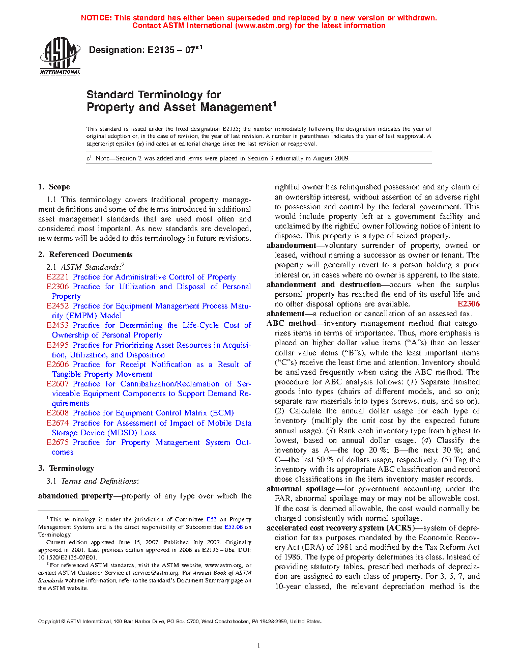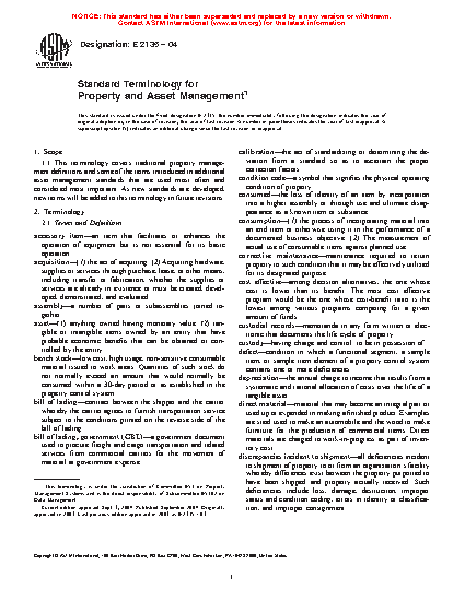 Standard Terminology for Property and Asset Management