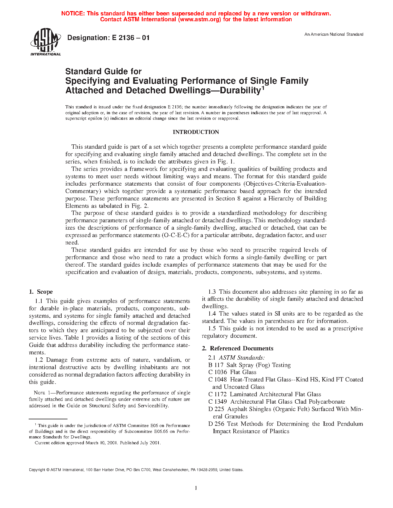 1.3 This document also addresses site planning in so far as it affects the durability of single family attached and detached dwellings.