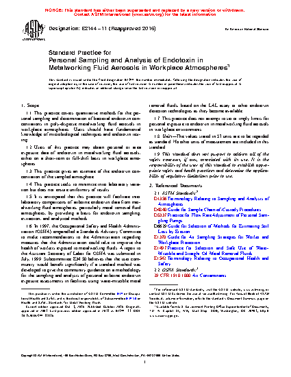 This practice for measuring airborne endotoxin concentrations in metalworking fluid atmospheres will help to foster a better understanding of endotoxin exposure-response relationships.