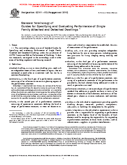 Standard Terminology of Guides for Specifying and Evaluating Performance of Single Family Attached and Detached Dwellings