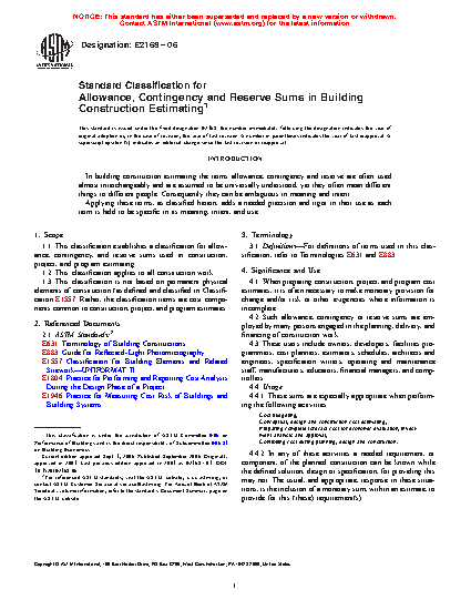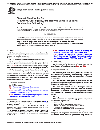 1.1 This classification establishes a classification for allowance, contingency, and reserve sums used in construction, project, and program estimating.
