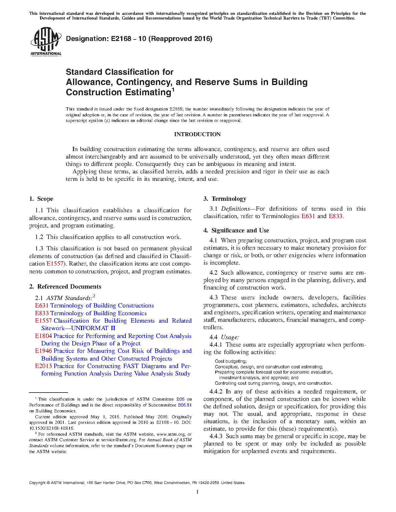 1.1 This classification establishes a classification for allowance, contingency, and reserve sums used in construction, project, and program estimating.