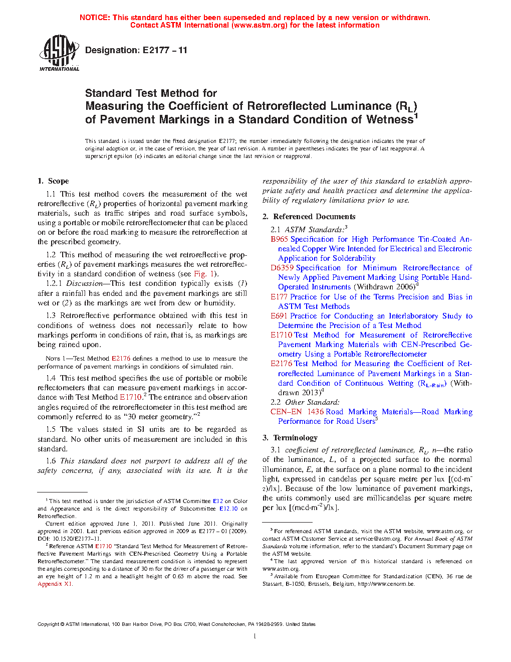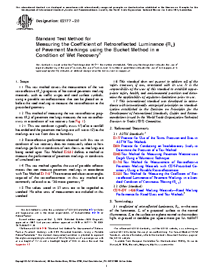 1.2 This method of measuring the wet retroreflective properties (RL) of pavement markings measures the wet retroreflectivity in a standard condition of wetness (see Fig. 1).