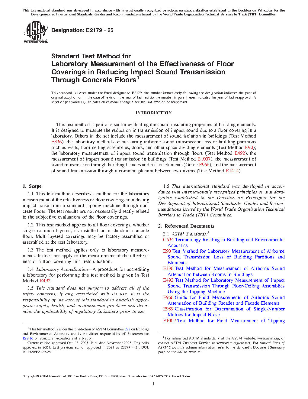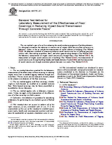 5.6 This test method closely follows that described in ISO 10140-1 (Annex H) except that the single number rating used is the impact insulation class (IIC) described in Classification E989. The description of the standard concrete floor also differs.
